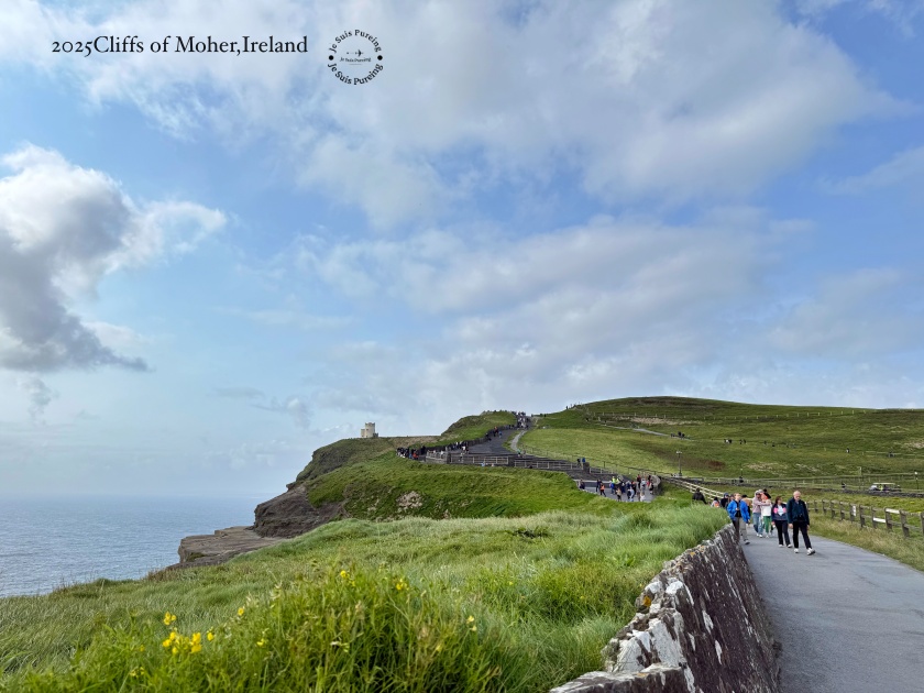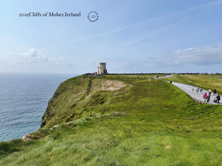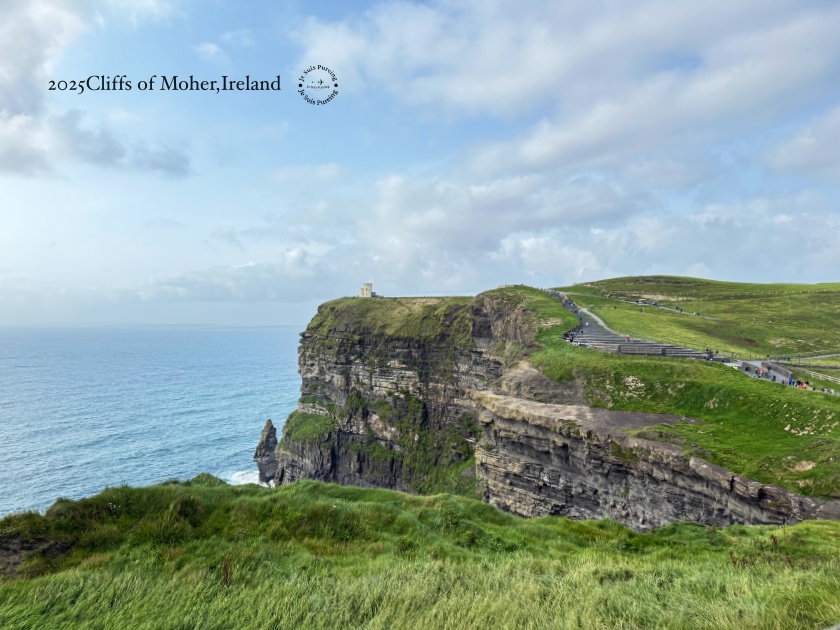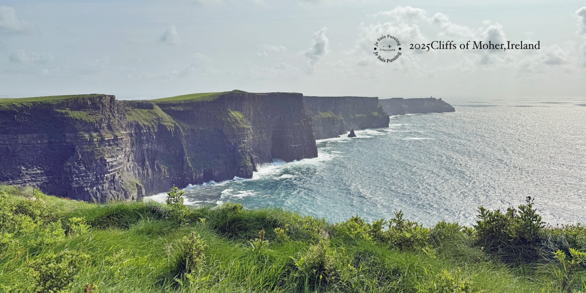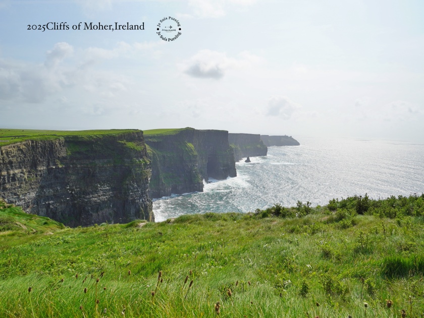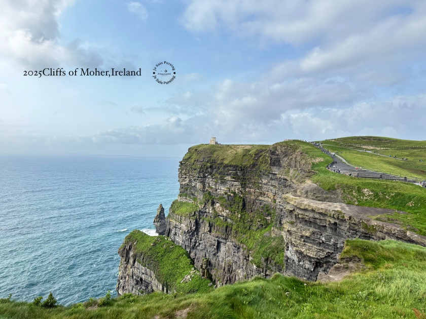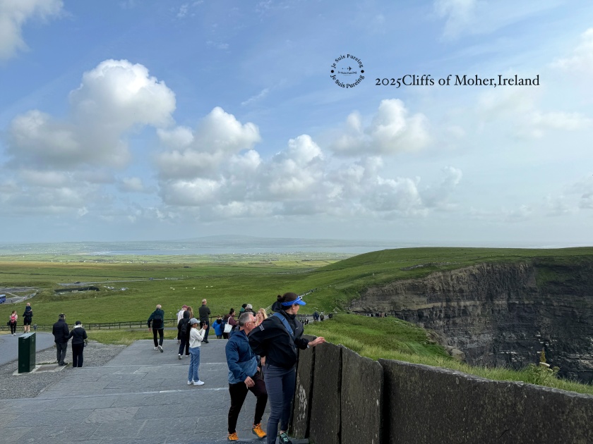 莫赫懸崖隸屬於「巴倫與莫赫懸崖地質公園」(Burren and Cliffs of Moher UNESCO Global Geopark),園區設有完善的觀景步道、遊客中心與多個拍照平台。從高威(Galway)或都柏林(Dublin)出發,都有巴士路線與一日遊行程可前往,交通十分便利。莫赫懸崖(Cliffs of Moher)是造訪愛爾蘭時不可錯過的經典路線之一。那天我在難得風勢柔和、天氣晴朗的夏日午後到訪,陽光傾灑在岩壁與大西洋之上,映出愛爾蘭最動人的藍與綠。