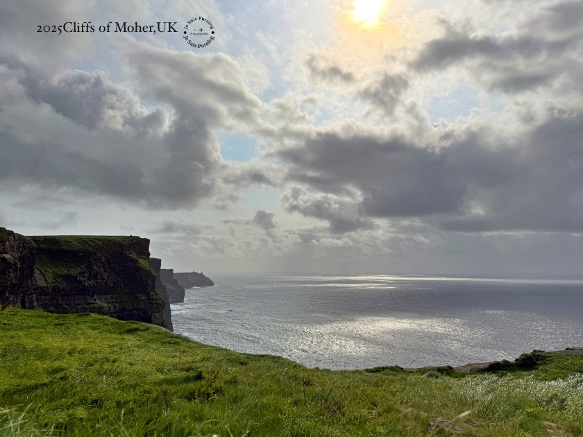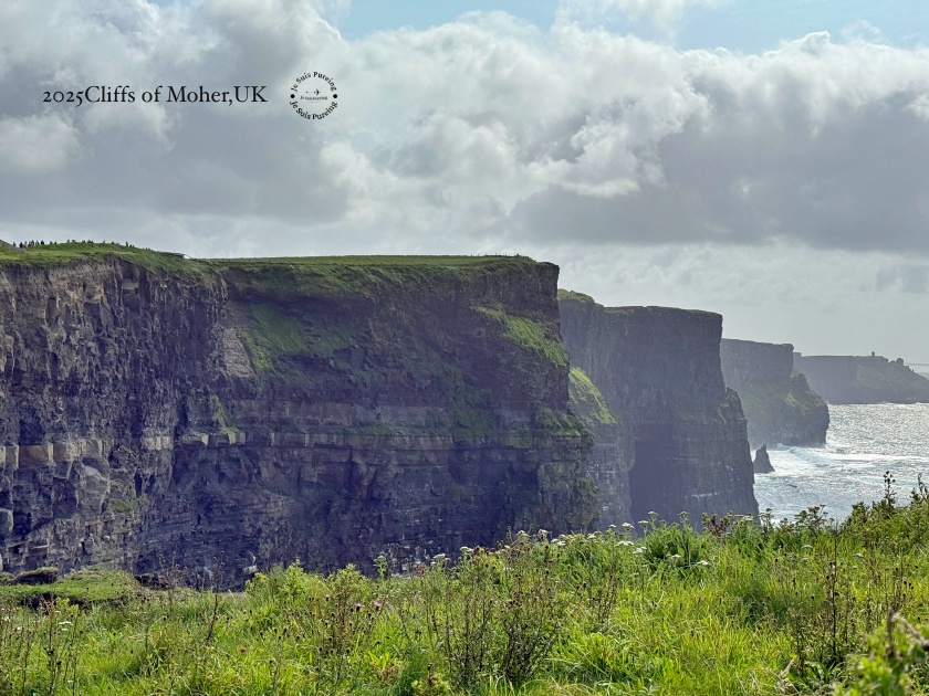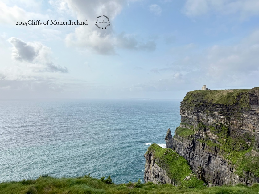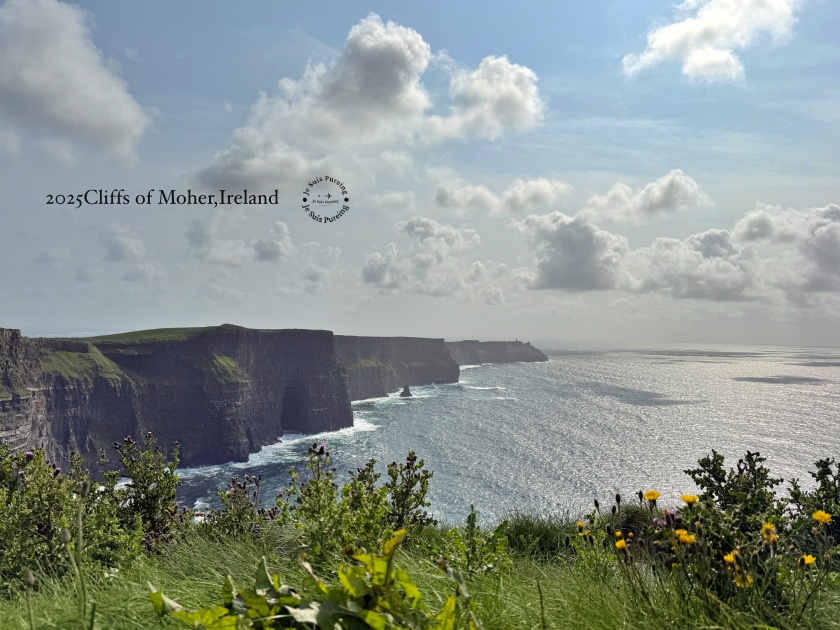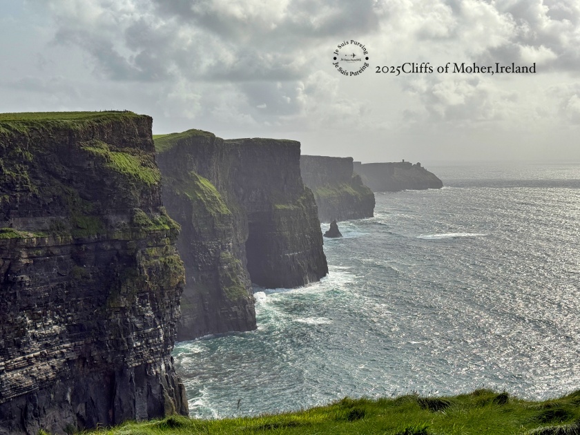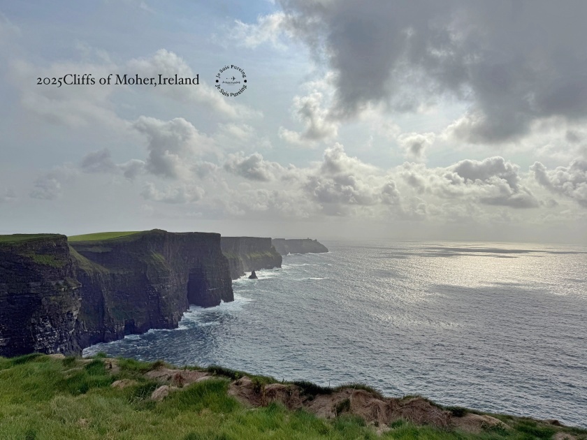 夏日傍晚時分的陽光在雲層間閃爍,映照出大西洋銀灰色的光澤。站在懸崖邊,有時海風暫時休兵,只剩海浪拍打岩壁的聲音。莫赫懸崖的壯麗不只是高度或規模,而是一種深沉的靜謐。那一刻,我感覺時間似乎放慢了,連雲都在遠方緩緩移動。