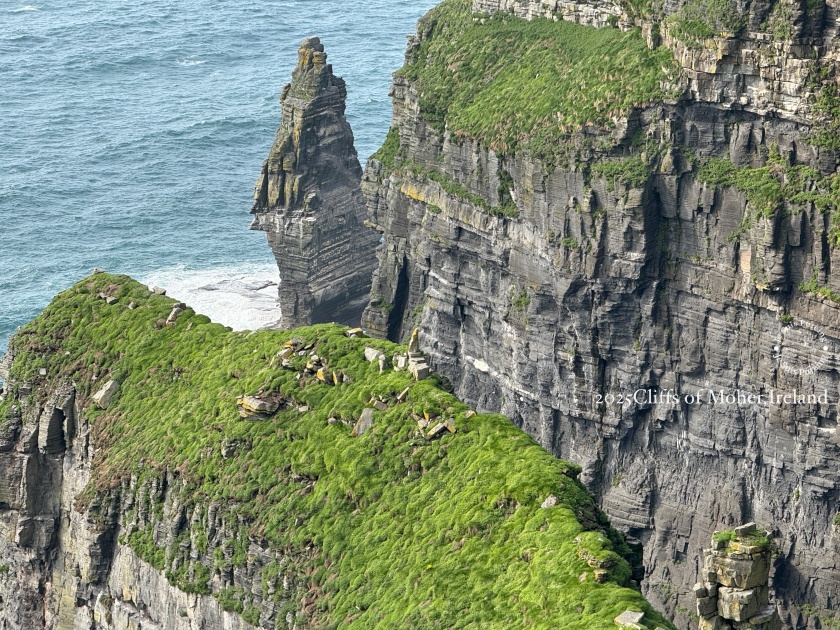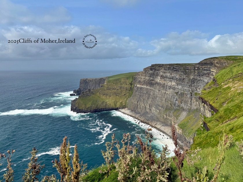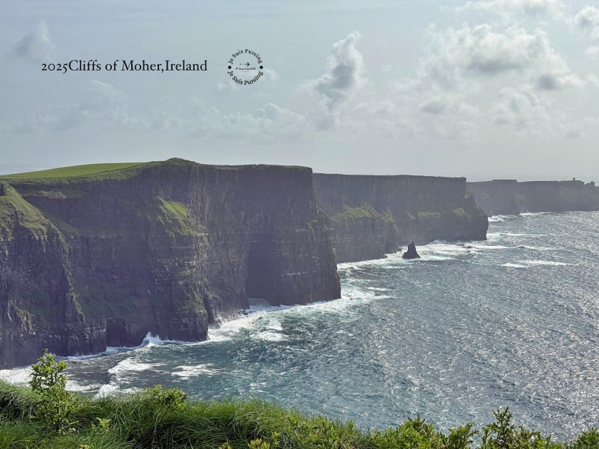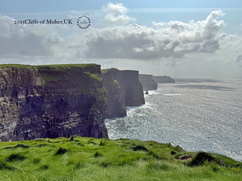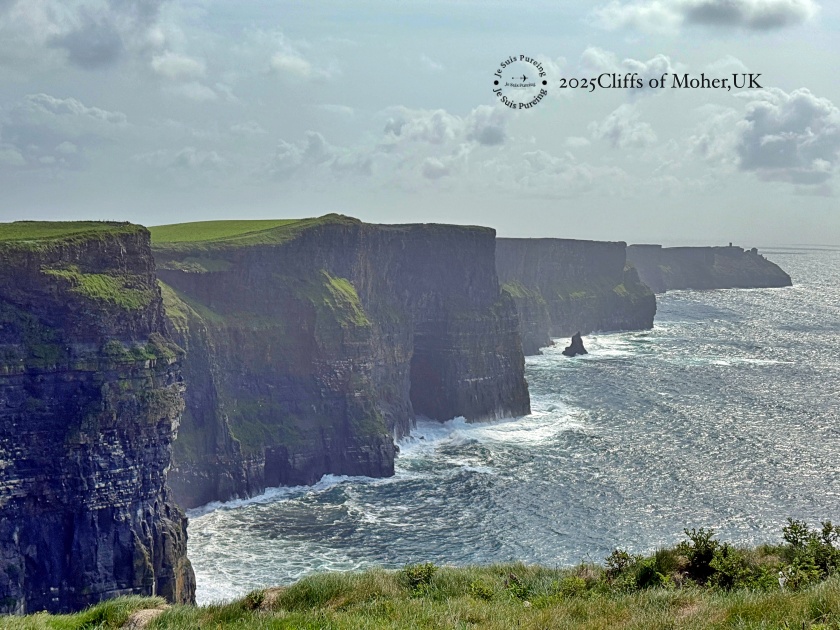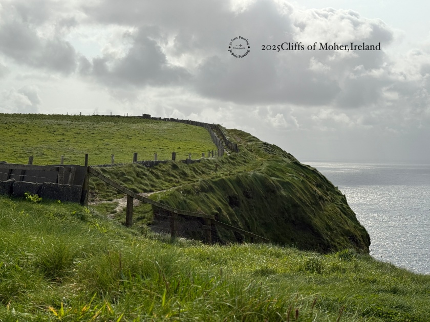 夏日傍晚時分的陽光在雲層間閃爍,映照出大西洋銀灰色的光澤。站在懸崖邊,有時海風暫時休兵,只剩海浪拍打岩壁的聲音。莫赫懸崖的壯麗不只是高度或規模,而是一種深沉的靜謐。那一刻,我感覺時間似乎放慢了,連雲都在遠方緩緩移動。