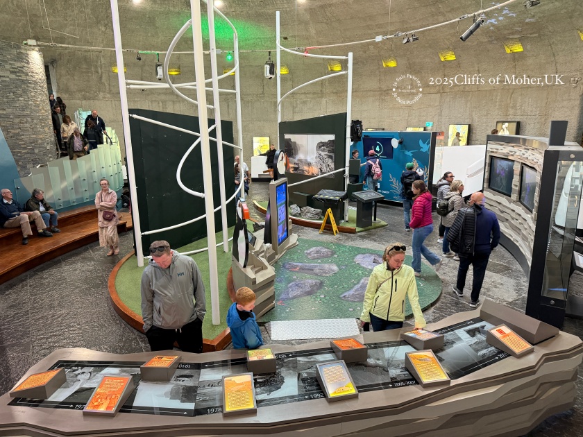 位於步道中段、嵌入山坡之中。館內設有互動展覽、4D 體驗劇場、咖啡館與禮品店,是了解懸崖地質與生態的最佳起點。官方網站:https://www.cliffsofmoher.ie/your-visit/visiting-the-cliffs/