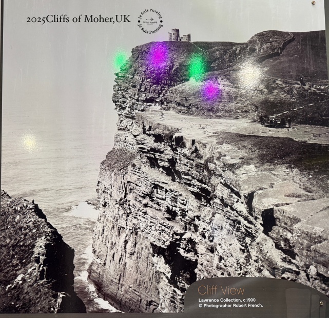 《歷史影像》以下二張照片是莫赫懸崖(Cliffs of Moher)的早期歷史影像,拍攝於 1900 年前後,展示在遊客中心內,屬於珍貴的攝影紀錄。