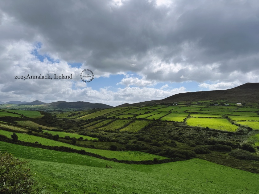 Annalack Viewpoint 位於愛爾蘭 Dingle 半島的 Annalack 地帶,鄰近 Annascaul 區域,是從內陸山脈遠眺半島邊緣的一個視角點。從這裡俯瞰,可以看到下方的田野與山丘輪廓,綠地與開闊的谷地交織,景色層次分明。天氣多變時,雲霧往往籠罩在山谷之間,使高地與低地的對比更為鮮明,也增添一份朦朧的氛圍。雖然相關介紹資料不多,但 常被旅行者列入途中拍照停留的清單,是沿線公路上一處值得暫歇、感受大西洋內陸景致的觀景點。