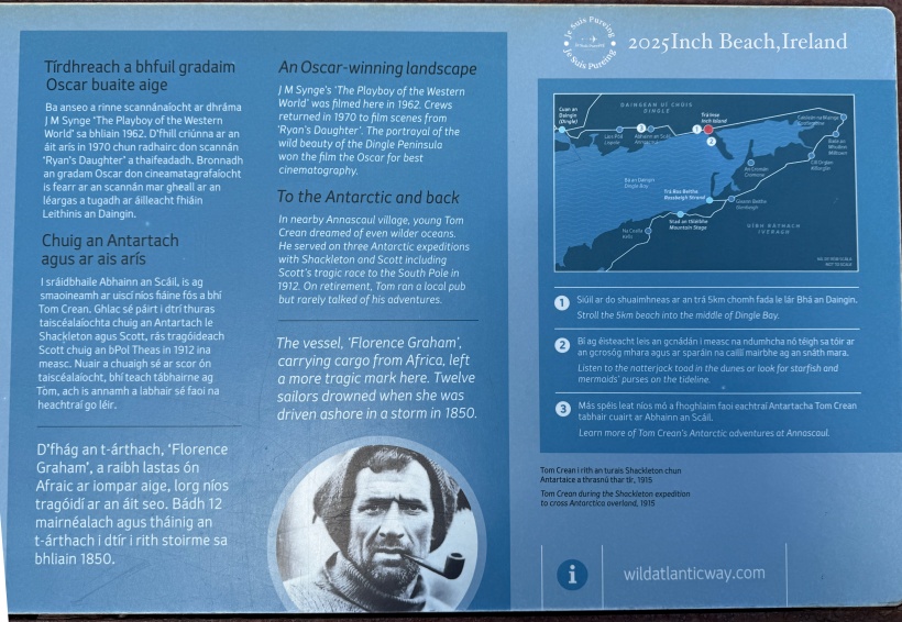 Inch Strand(因奇沙灘),愛爾蘭語名稱:Trá Inse,長達 5 公里的金色沙灘延伸至 Dingle Bay,背後是壯觀的沙丘,面向大西洋。這裡不僅是衝浪、游泳和釣魚的熱門地點,也曾有無數遊客、漁夫、海鷗,甚至電影明星在此留下足跡,讓世界看見愛爾蘭西岸的動人之美。