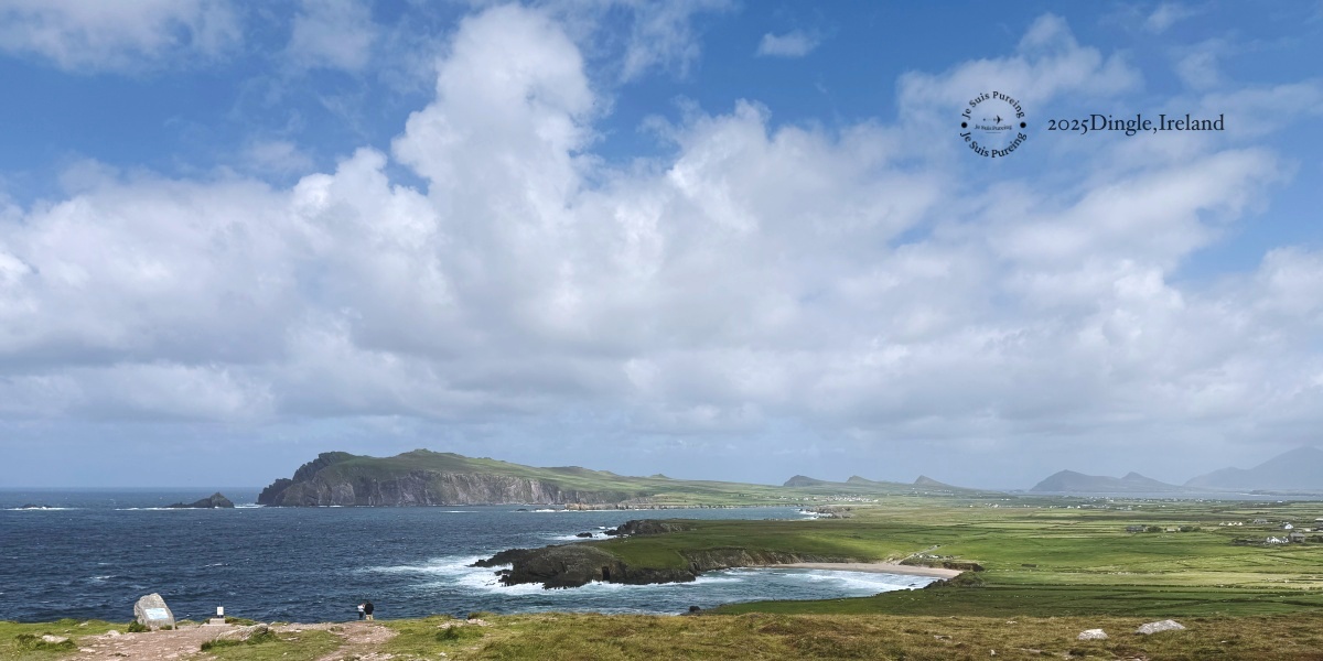 這趟夏日的愛爾蘭之旅,本來預訂好的一日遊行程臨時被取消,幸好前一晚又在網上找到另一個旅行團,趕緊下單訂下了位子。隔天早晨,從 Killarney 出發,正式展開丁格爾半島一日遊。從因奇海灘(Inch Beach)開始,感受大西洋浪潮的震撼;接著沿著 Slea Head Drive 前行,壯觀的海角、古老的石屋與沿途的純樸村落接連登場。無論是自駕環半島,或是參加旅行團從 Killarney 或 Dingle 出發,都能輕鬆領略這片迷人之地。而當站在懸崖邊,任海風吹拂時,你會發現,這裡的美麗不是短暫的驚艷,而是會深深烙印在心裡的感動。