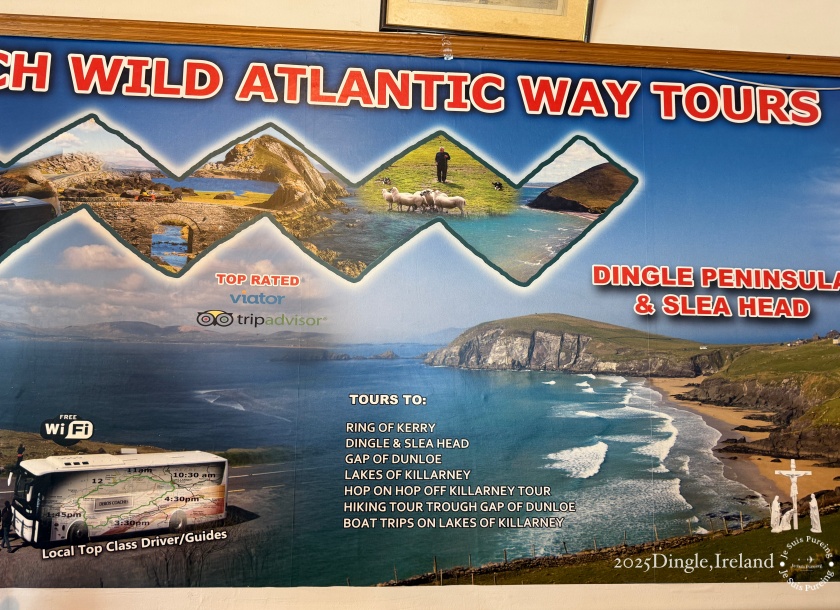 丁格爾半島的景點其實相當多,要深入走訪、細細體會,最理想的方式仍是自駕。我這次選擇參加旅行團的一日遊,只能以遊覽方式環繞一圈,沿途雖然匆忙,卻仍被那片壯闊的海岸線深深震撼。我個人建議可以選擇 Dingle 城鎮當作主要據點,停留幾日,慢慢走訪這塊美麗的大西洋海洋線景色。