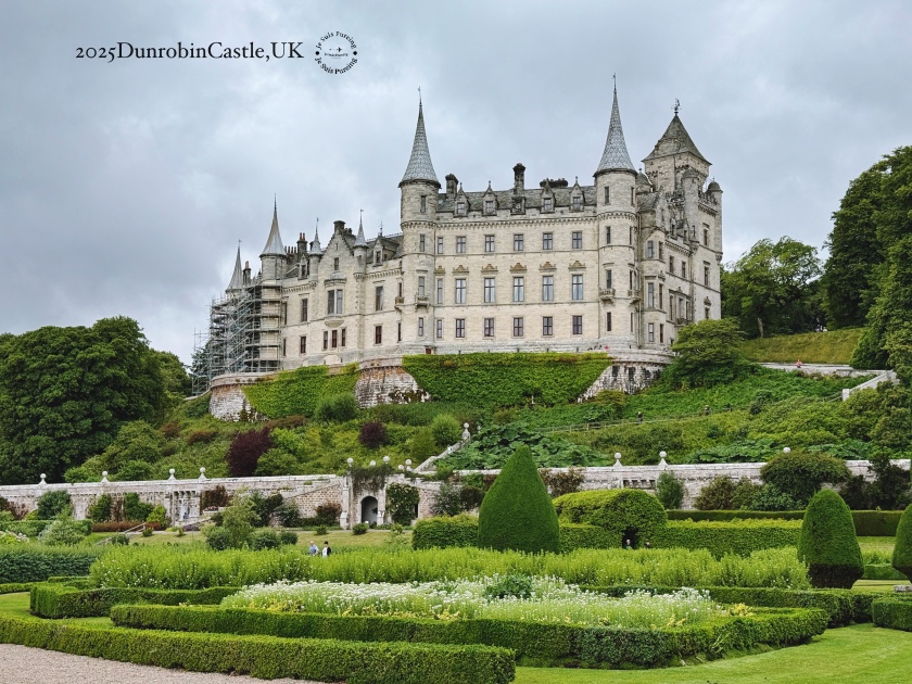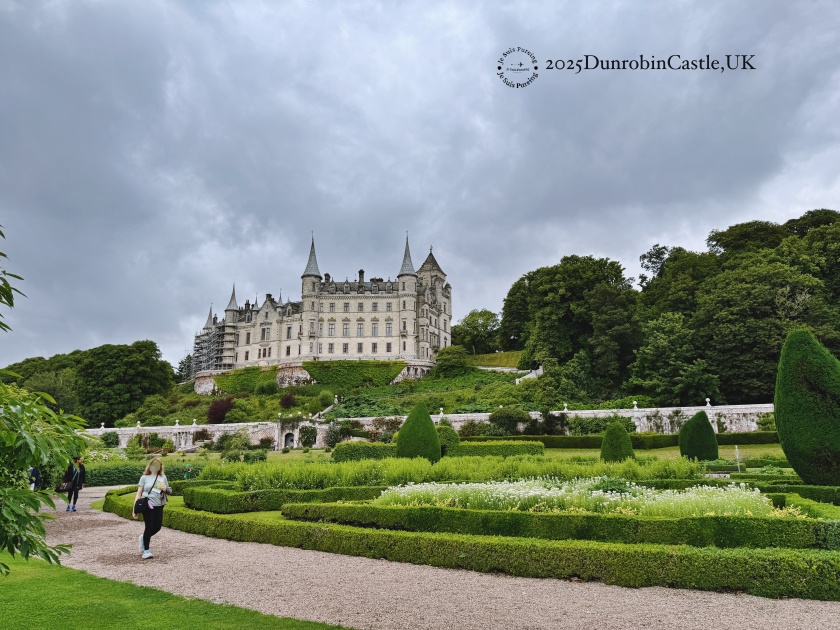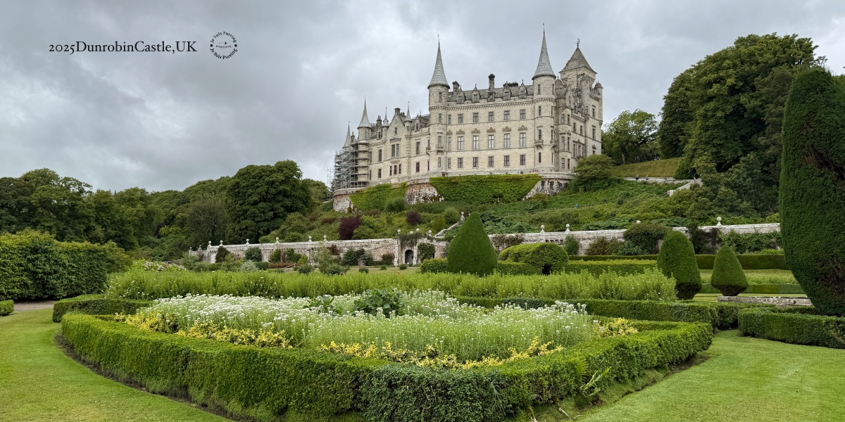 Dunrobin Castle 城堡花園位於蘇格蘭高地北方,是薩瑟蘭公爵家族(Duke of Sutherland)的世襲府邸,也是蘇格蘭最古老、規模最大的私人住宅之一。城堡的歷史可追溯至 13 世紀,歷經多次擴建與改建;19 世紀由建築師 Sir Charles Barry(倫敦國會大廈設計者)重新設計,使外觀更具法式風格,宛如法國羅亞爾河谷的城堡。建築設計融合蘇格蘭巴洛克與法式文藝復興風格,花園設計則受到凡爾賽宮的啟發,幾何線條對稱優雅,至今仍保留 19 世紀的原貌。
