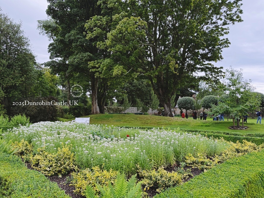 城堡平台下方的「公爵夫人花壇」現有形式可追溯至 1920 年代,是花園中最具代表性的景觀之一。由於位處北緯高地,夏季白晝特別長,使得這裡的草本植物生長異常高大。沿著支撐牆間隙,可以看到加州百合與早二十世紀的混種攀緣玫瑰同時盛放,這些品種如今已相當罕見。