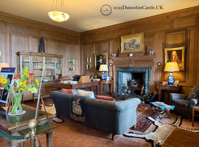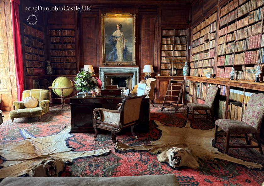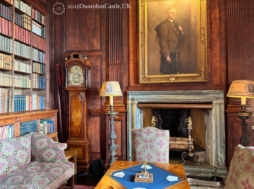 Dunrobin 城堡自十三世紀以來便是 Sutherland 薩瑟蘭家族的領地,是蘇格蘭最古老的貴族家族之一。家族早期的族長擁有伯爵頭銜,後來因世襲與婚姻聯姻,家族地位不斷提升,最終成為薩瑟蘭公爵(Duke of Sutherland)。這座書房象徵的不只是權力與學識,更是家族延續的精神,牆上的肖像一代接一代,記錄著這個家族在蘇格蘭高地社會與政治中長達數世紀的影響力。