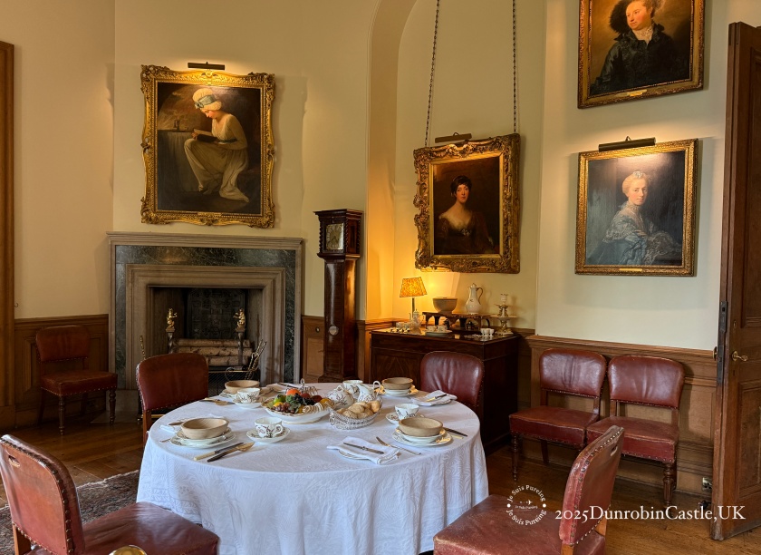 在維多利亞時期,貴族住宅中常為不同用途設置專用房間,早餐室便是其中之一。這間房間展示了薩瑟蘭家族(Sutherland family)歷代的家族肖像與藝術收藏,牆上懸掛多幅18至19世紀的肖像畫。門旁可見第十二代薩瑟蘭伯爵的肖像,以及 Sir David Wilkie(1785–1841) 的名畫《早餐》(The Breakfast),描繪一幕優雅的英國家庭早晨場景。