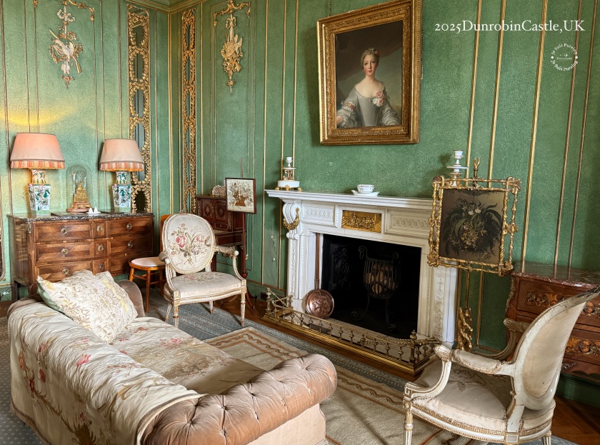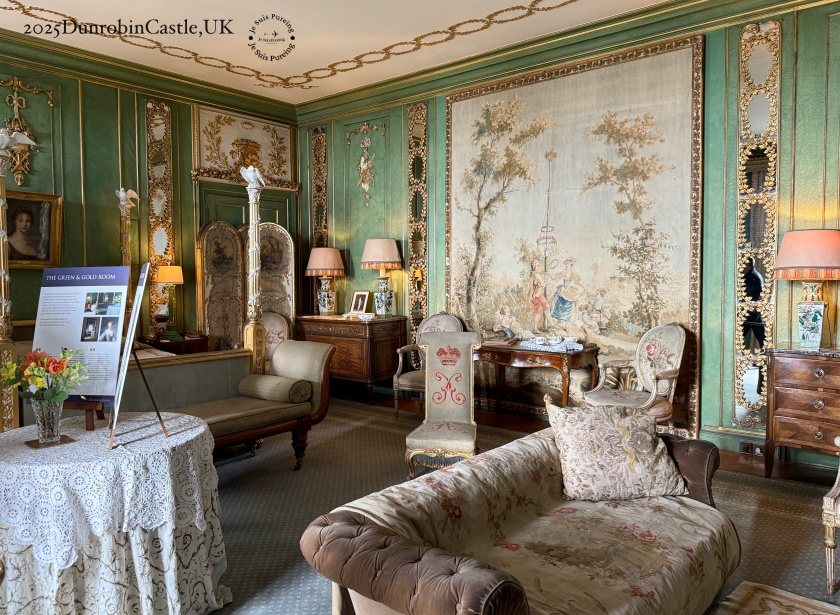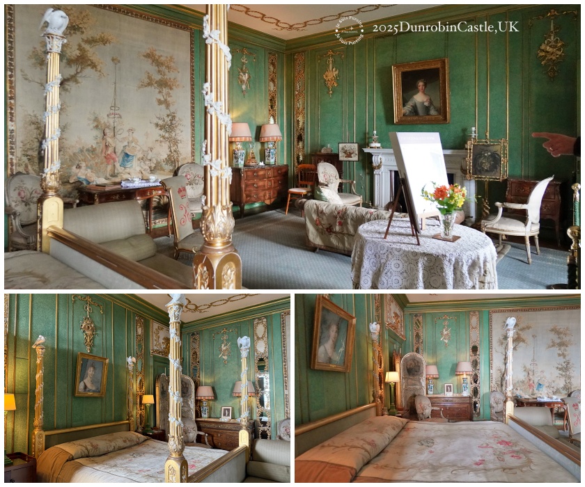 整體設計融合了十九世紀的法式文藝復興風格與蘇格蘭的古典氣勢,無論在家具細節或色彩氛圍上都極具貴族風範。綠金房不僅是一間臥室,更象徵著薩瑟蘭家族的榮耀與品味,是了解 Dunrobin Castle 城堡歷史與貴族生活的重要篇章之一。