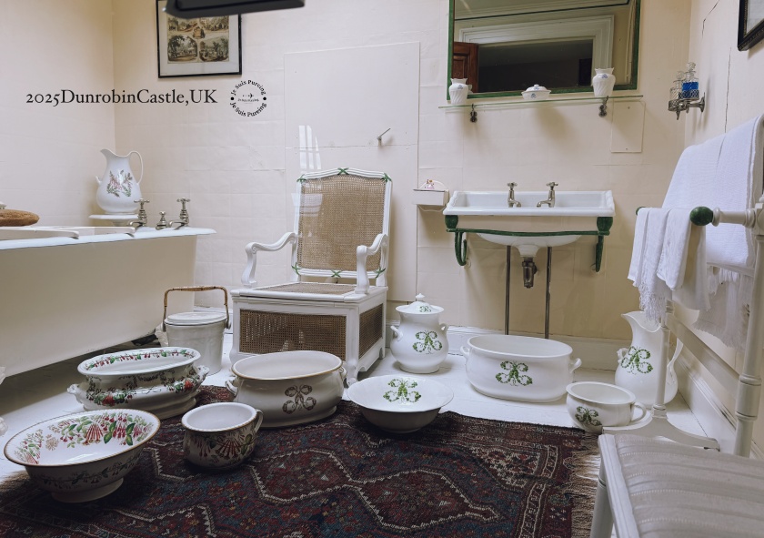 在靠近侍僕房的區域,還展示了維多利亞時期的洗衣與燙衣設備。木桌上鋪著白色蕾絲布,幾件深色布料掛在燙衣架上,角落裡擺著高背格紋椅與旅行箱。這些細節共同構成了城堡的另一種敘事方式,不再是權力與頭銜的象徵,而是生活日常。透過它們,我們看見貴族生活不只是華麗,也有柴米油鹽的真實一面。