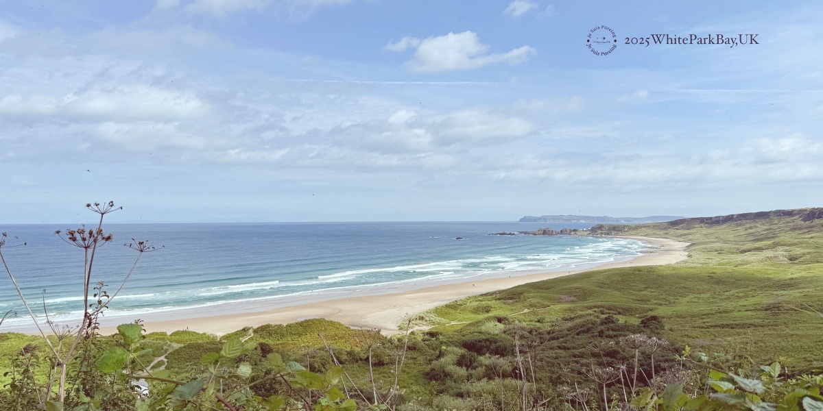 White Park Bay 位於北愛爾蘭安特里姆郡,在 Ballintoy 和 Ballycastle 之間,正好落在著名的巨人堤道海岸路線上,是 Causeway Coast 上最自然純淨的海灣之一,也被劃入 Causeway Coast and Glens 的傑出自然美景區(AONB)。這片海灣全長約 4.8 公里,由優雅呈弧線狀的白沙灘構成,兩側被高聳的白堊岩懸崖環繞,背後則是起伏的草坡與沙丘系統,是北愛極少數仍舊保持原始風貌的海岸景觀。White Park Bay 自 1938 年起便由國家信託(National Trust)管理,持續守護其自然美景與生態環境。