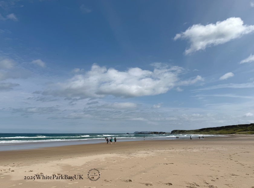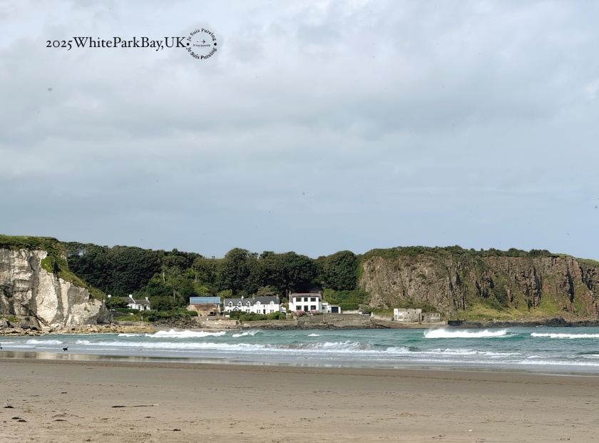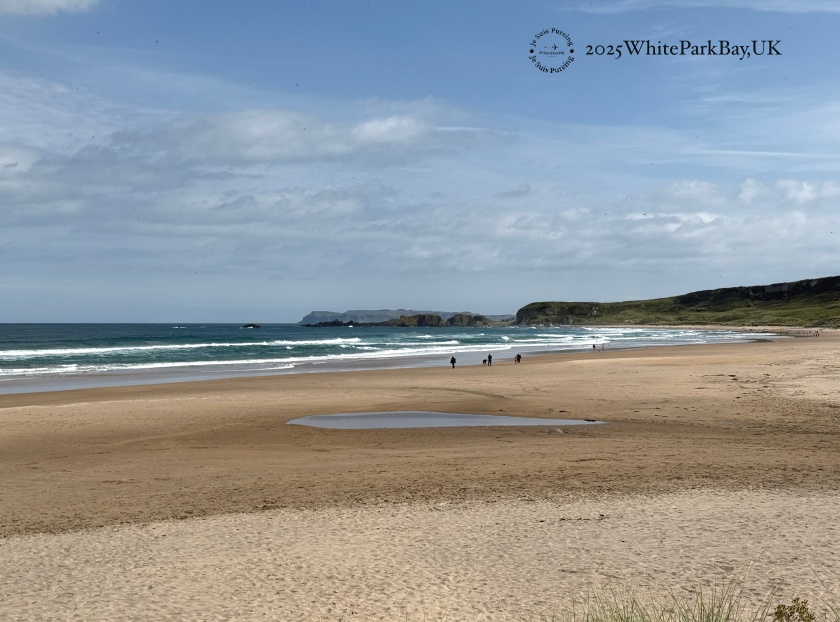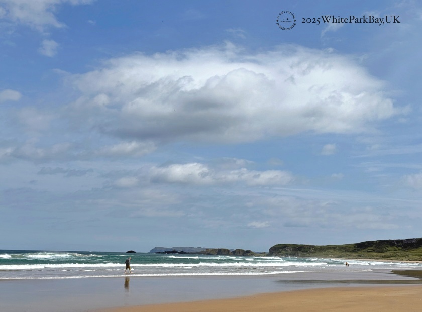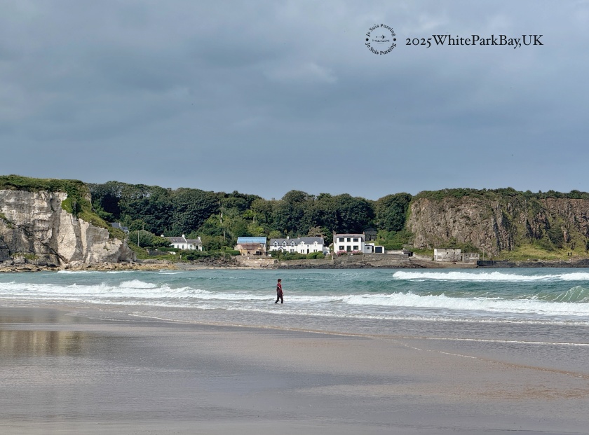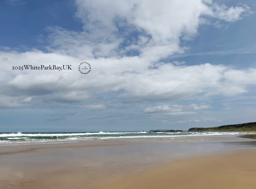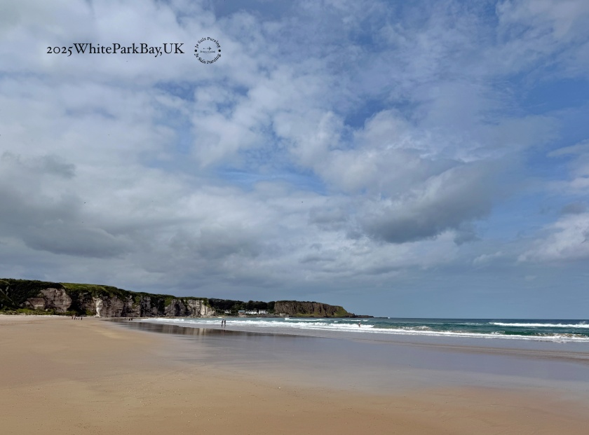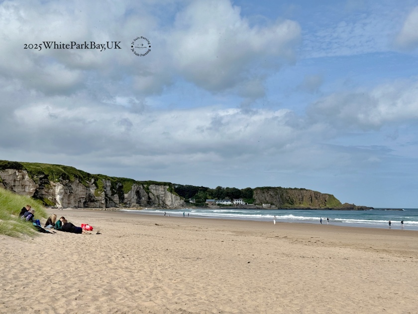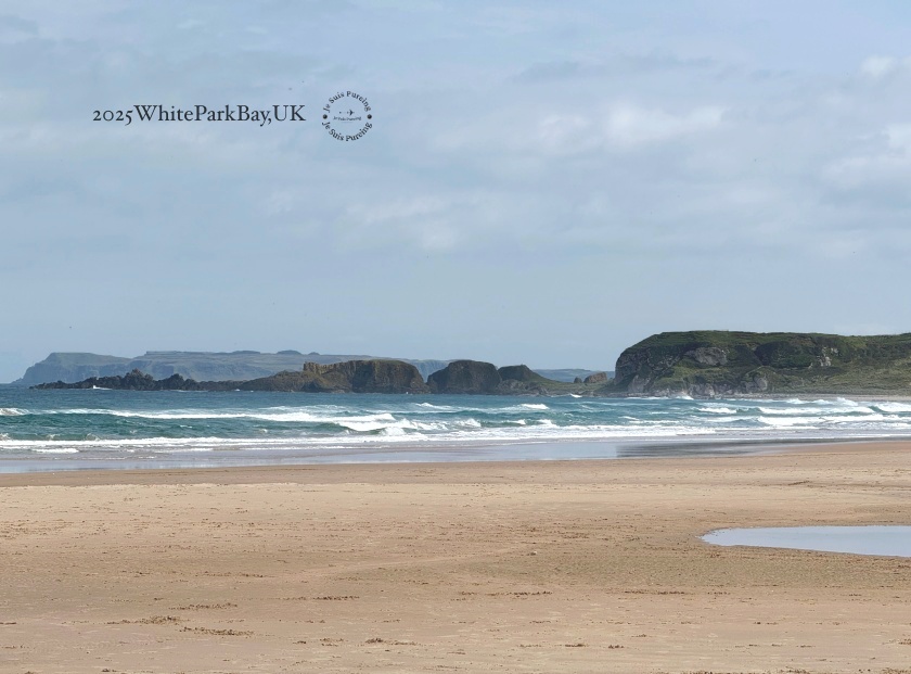 這次我選擇透過大眾運輸工具與健行的方式,一段段走向這片海岸的風景。而其中最令我印象深刻的,就是 White Park Bay。它不像巨人堤道那樣人潮洶湧,但卻擁有北愛最乾淨、最純粹的白沙灘。當我沿著草坡走下沙灘,海風輕柔地迎面吹來,眼前是一條優雅彎曲、看不見盡頭的海岸線。細白的沙彷彿替整個海灣覆上一層柔光,使這裡顯得特別寧靜而從容。天氣好的時候,那種自在舒適的氛圍,甚至會讓人忘記自己其實正站在北大西洋的岸邊。
