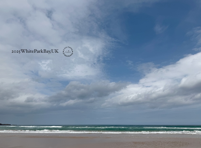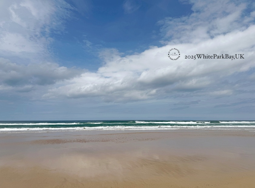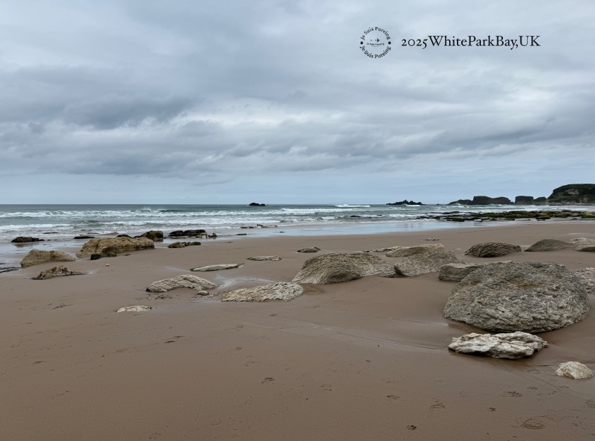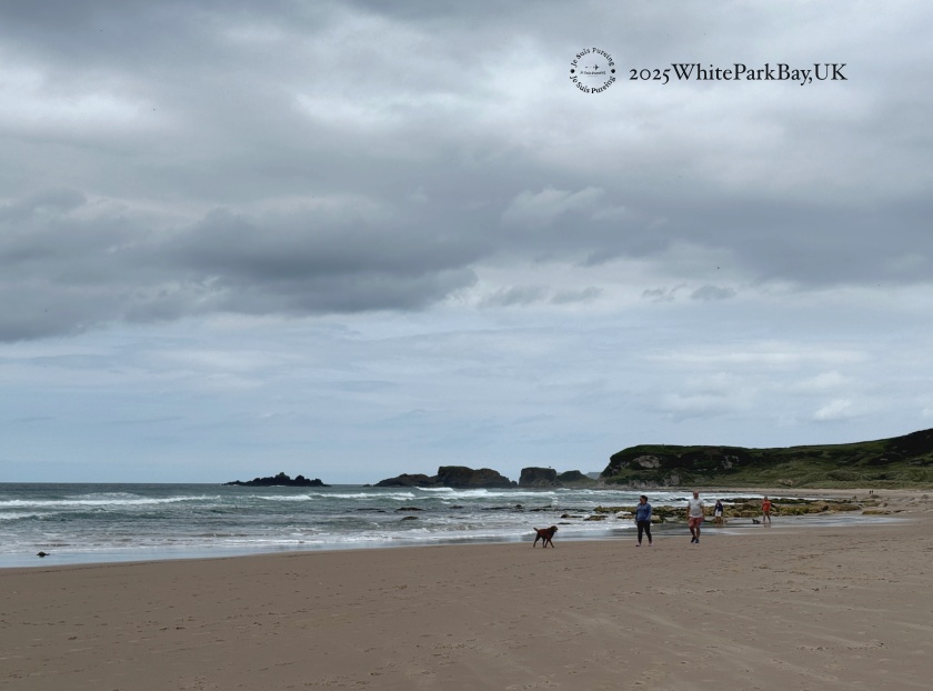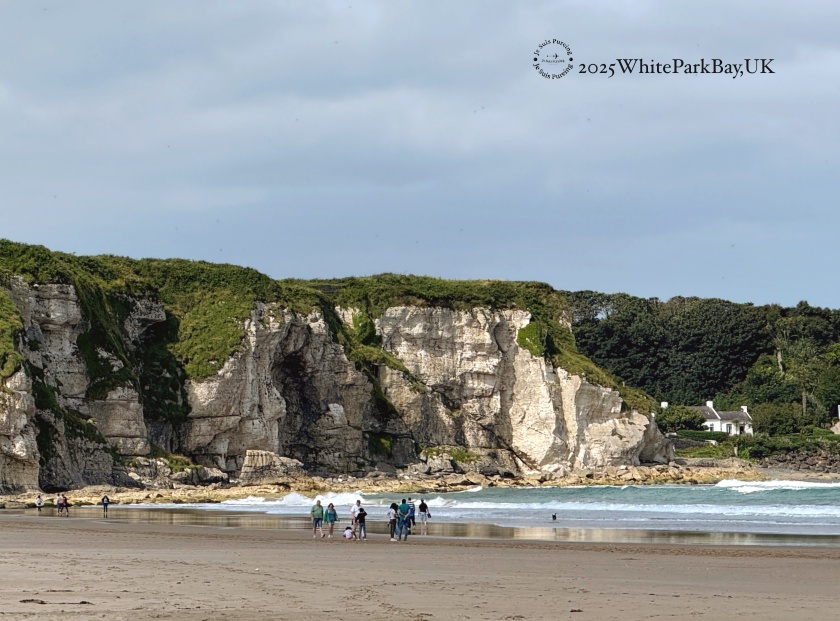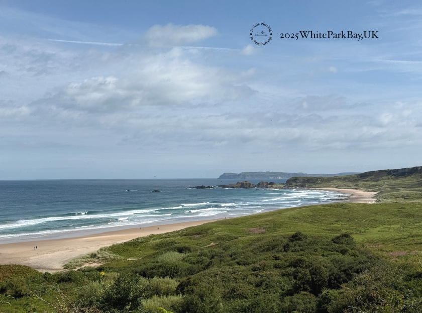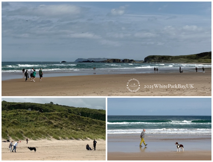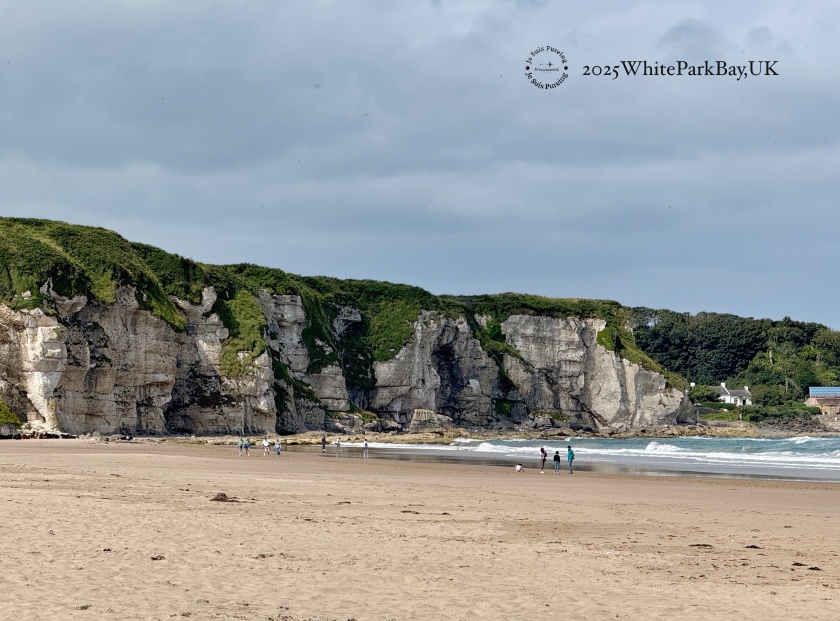 這次我選擇透過大眾運輸工具與健行的方式,一段段走向這片海岸的風景。而其中最令我印象深刻的,就是 White Park Bay。它不像巨人堤道那樣人潮洶湧,但卻擁有北愛最乾淨、最純粹的白沙灘。當我沿著草坡走下沙灘,海風輕柔地迎面吹來,眼前是一條優雅彎曲、看不見盡頭的海岸線。細白的沙彷彿替整個海灣覆上一層柔光,使這裡顯得特別寧靜而從容。天氣好的時候,那種自在舒適的氛圍,甚至會讓人忘記自己其實正站在北大西洋的岸邊。