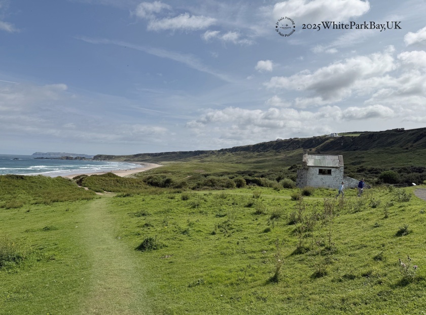 沿著步道前行,會經過舊青年旅館(White Park Bay Youth Hostel)的遺址,接著是一段蜿蜒的石階步道。越往下走,海風越明顯,伴隨著從海灣傳來的潮聲。整段路線並不算困難,但坡度稍陡,下坡時建議放慢腳步。當小徑的最後一段豁然開朗時,眼前會突然展開一條優雅的弧形白沙灘,完全沒有人工設施的修飾,直接到看到最真實的自然海岸沙灘景色。