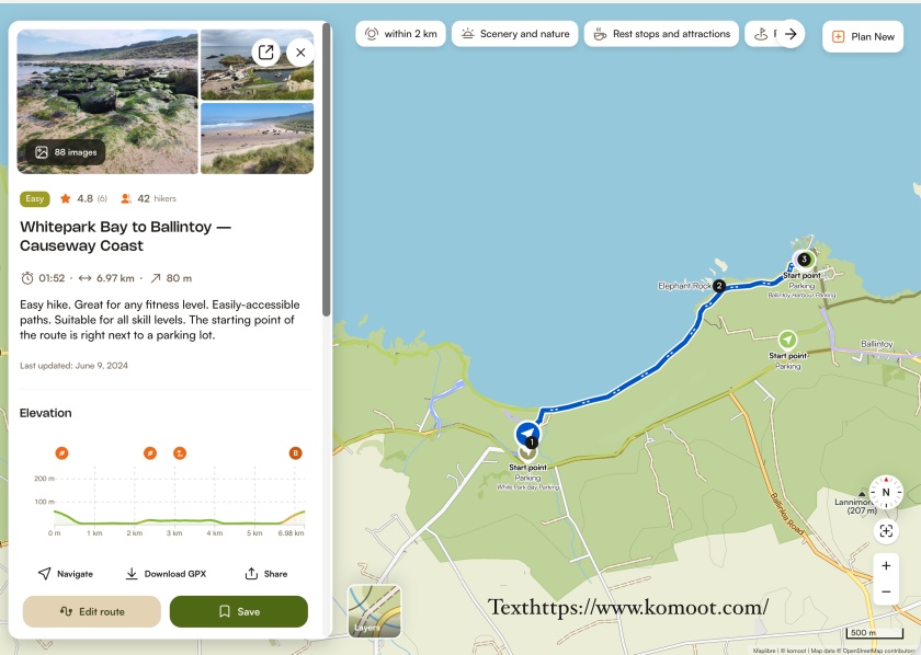 因為景觀多元,又擁有海灣、草坡、沙丘與海崖等不同地貌,White Park Bay 也成為許多健行者喜愛的路段。從高處望向整片海灘,或沿著沙灘散步,都能看到和巨人堤道截然不同、卻同樣迷人的北愛海岸風景。