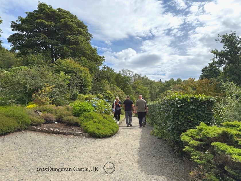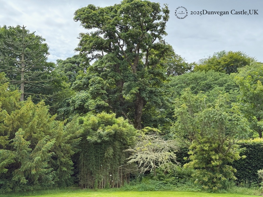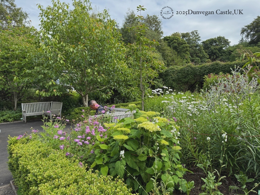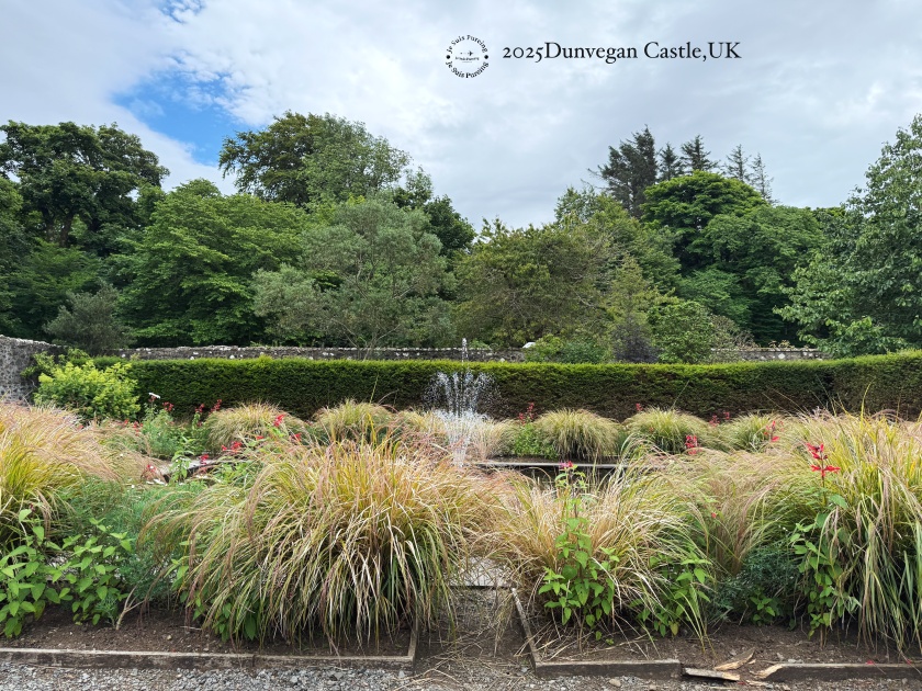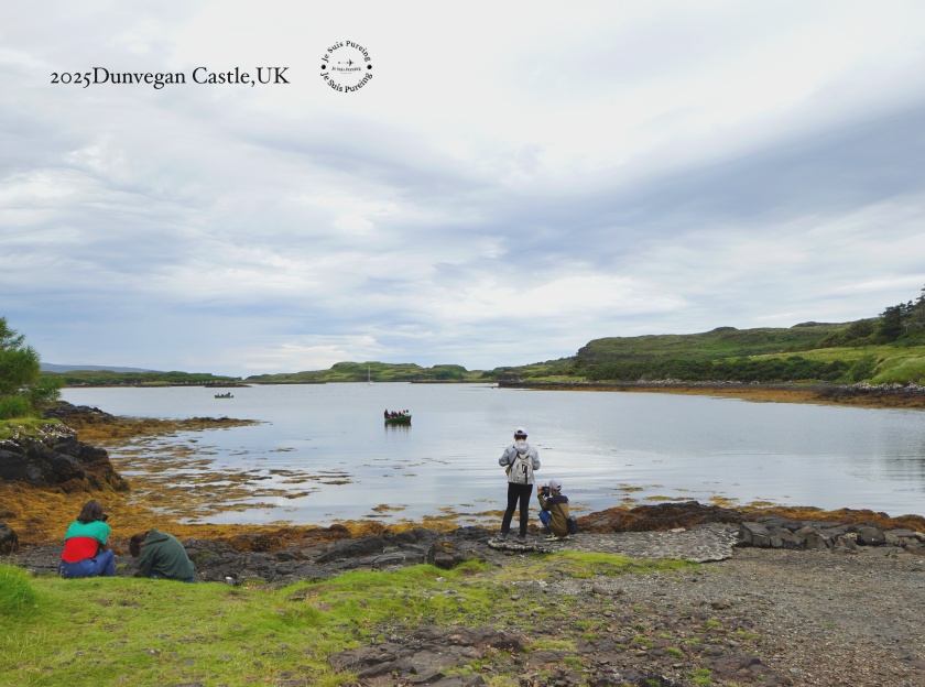 這次在天空島住宿停留五天,扣除第一天搭車移動,前面兩天安排了老人岩(Old Man of Storr)和 Quiraing 的健行行程。到了第四天,刻意放慢步調,想換個方式認識天空島上最具代表性的千年氏族,搭乘巴士前往 Dunvegan Castle 參觀。原本只是單純造訪一座歷史城堡,實際走進花園區後,才發現這裡幾乎就像一座大型植物園;沿著步道穿梭在層次豐富的庭園設計中,最後來到港灣區,看著城堡映在水面的倒影,收獲滿滿。