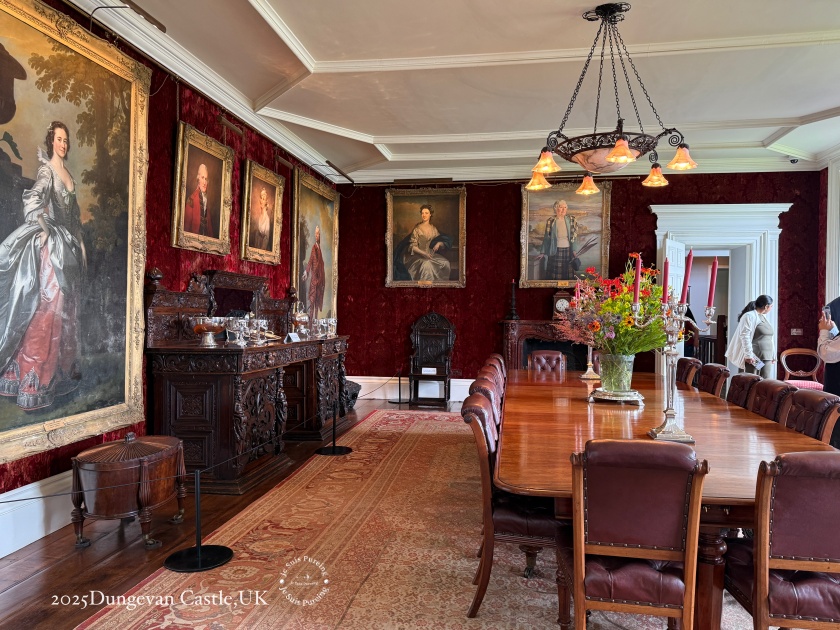 餐廳牆面懸掛多幅重要肖像畫,包括畫家 Allan Ramsay 與 Sir Henry Raeburn 的作品,描繪歷任族長與其家族成員。其中第 22 任族長 Norman MacLeod 的肖像尤為醒目,他在畫中身穿格紋服飾,象徵對卡洛登戰役後禁令的抗拒,也為家族歷史中極具爭議的人物之一。