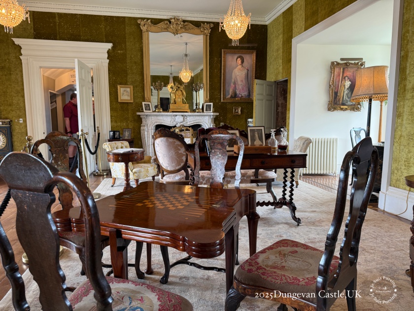 房間內仍可見喬治三世時期的家具,包括可作為遊戲桌、牌桌與茶桌使用的桃花心木桌,以及多幅與家族成員相關的肖像畫。整個客廳不僅是接待與展示的空間,也濃縮了麥克勞德家族從中世紀堡壘走向近代貴族生活的轉變歷程。