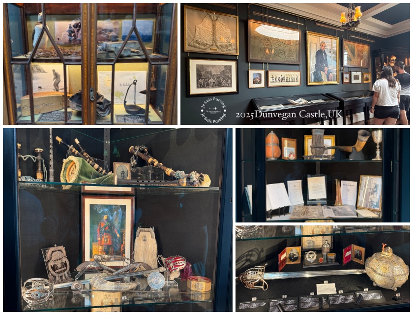 由於人潮較多,參觀時我只有簡單瀏覽,其中有幾件展示的重要家族文物,例如中世紀的 Dunvegan Cup、Rory Mor 的飲酒號角,以及與詹姆士黨相關的歷史物件,呈現出家族在不同時代、不同立場之間的複雜角色。