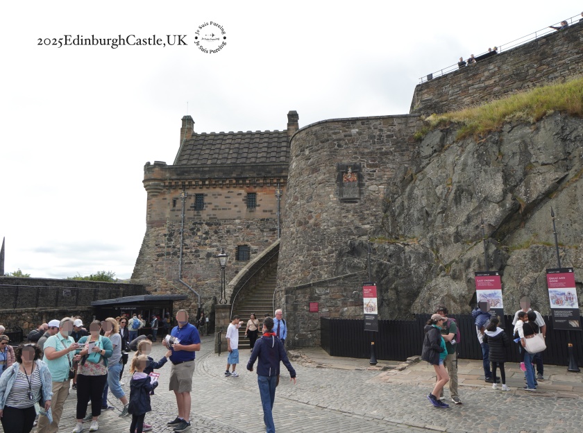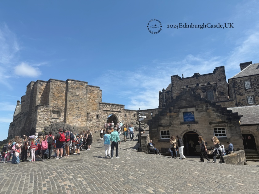 進入愛丁堡城堡前,會先來到城堡前面的城堡廣場(Esplanade),現場有圍欄通通,入場時依照通道分流排隊入場,掃描器門票的QR碼(手機顯示即可)就可以入場。通過吊橋後,才算真正踏進城堡範圍。城堡內的路面大多是石板與鵝卵石鋪成,加上整體地勢偏高,參觀過程幾乎一路往上走,穿著好走的鞋子會輕鬆許多。
