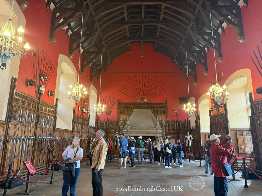 參觀時可以特別抬頭看一下,屋頂結構上面有各種小圖案,還有現場展出的武器細節,能更完整體會這座空間在蘇格蘭歷史中所扮演的角色。整體而言,慶典大廳不僅是一處建築亮點,也是愛丁堡城堡軍事與王權歷史的重要見證。