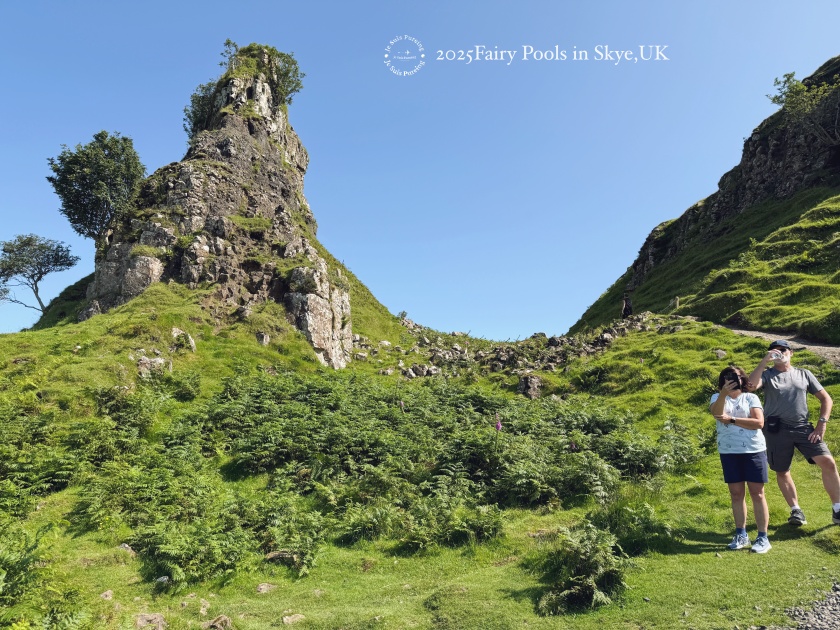 沿途還看到兩位西方背包客,背著幾乎與半個人身高的大型背包,一路徒步走上 Fairy Glen,在這樣炎熱的天氣下,心裡其實相當佩服。天空島的健行路線整體來說難度並不高,但真正考驗人的往往不是地形,而是天氣與交通銜接。只要事先把巴士班次與行程動線安排好,準備足夠的飲水與簡單乾糧,並確認沿途補給點的位置,其實就能相對從容地完成行程。
