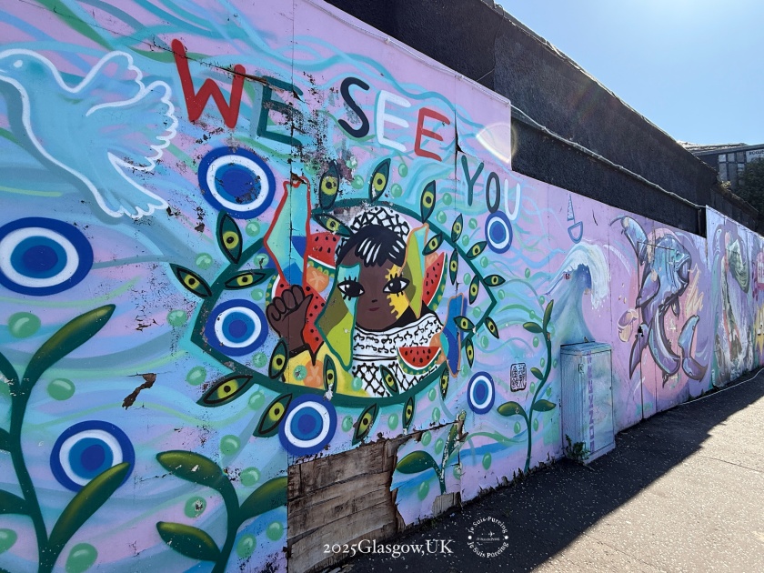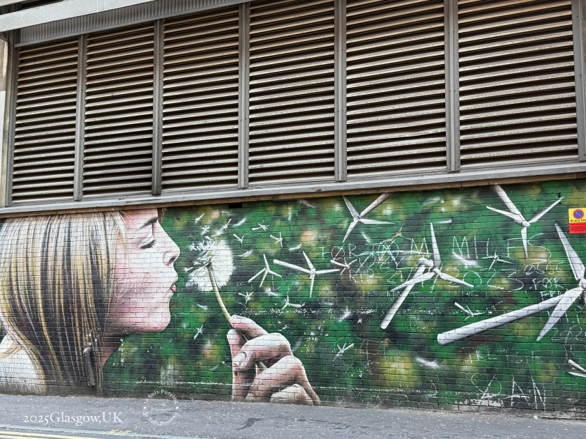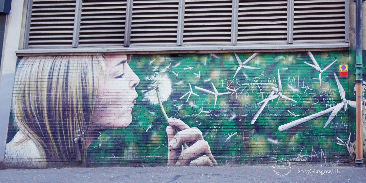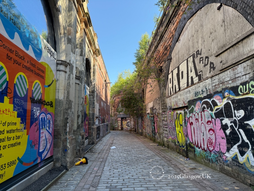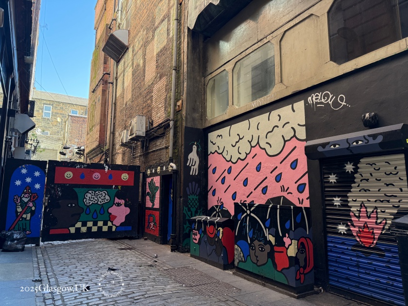 我這次特地花了半天實際走訪,心得是多數街頭藝術作品都集中在市中心一帶,但仍有不少作品藏身於巷弄之間、建築外牆甚至橋樑下方,往往就是不經意就會錯過的轉角。尋找壁畫的過程本身就相當有趣,用一種不同於傳統觀光的方式,認識這座蘇格蘭的重要城市–格拉斯哥。