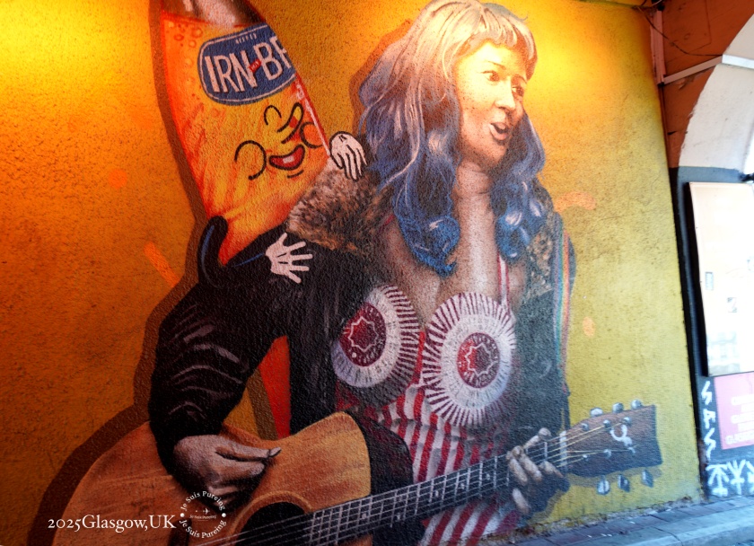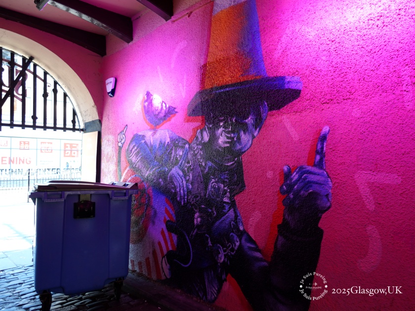 這件裝置作品和前面藝術畫作都是同一作者,座落在城市最繁忙的地段之一,為周圍街景帶來鮮明色彩與輕鬆氣氛,不刻意嚴肅、卻讓人會心一笑,正是格拉斯哥街頭文化最迷人的地方。