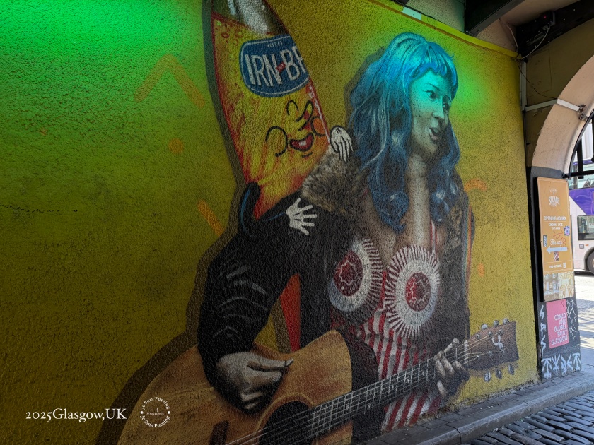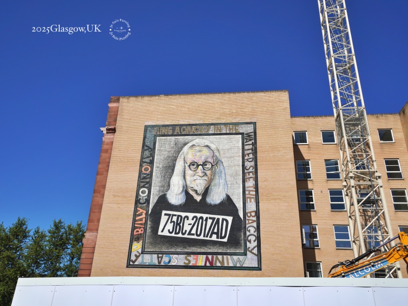 這個紀念計畫不只這一面牆,還有第三件作品,是 BBC Scotland 委託藝術家 Rachel Maclean 創作的數位肖像,後來用轉印的方式設在 Gallowgate。走在市中心找這幾幅壁畫時,會有一種在城市裡慢慢拼湊 Billy Connolly 故事的感覺,也滿有趣的。
