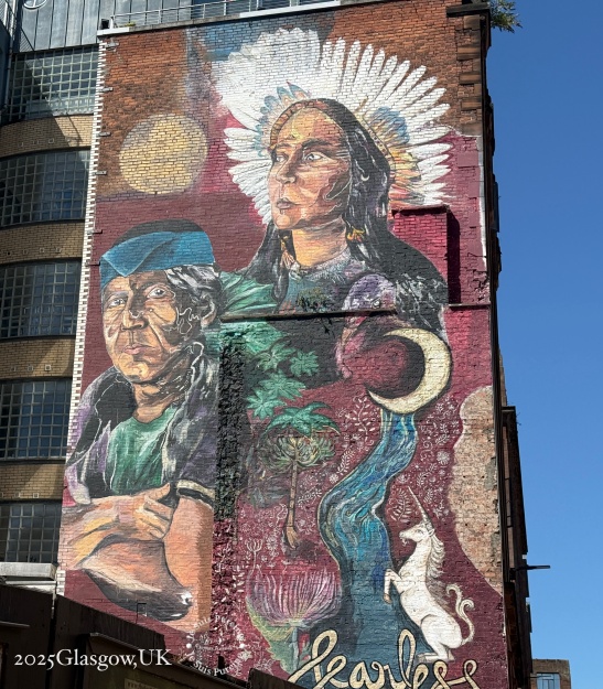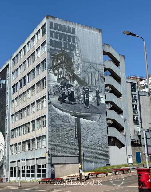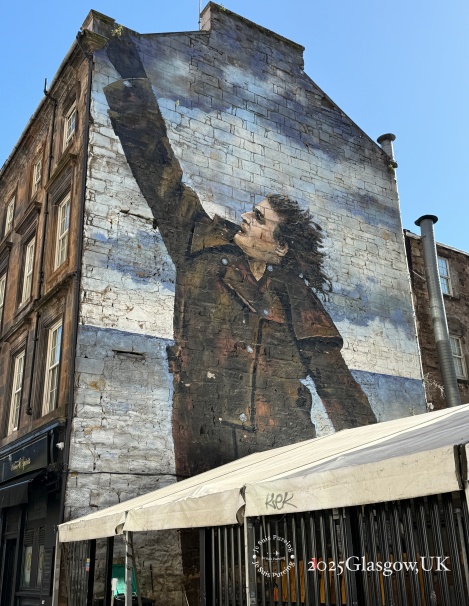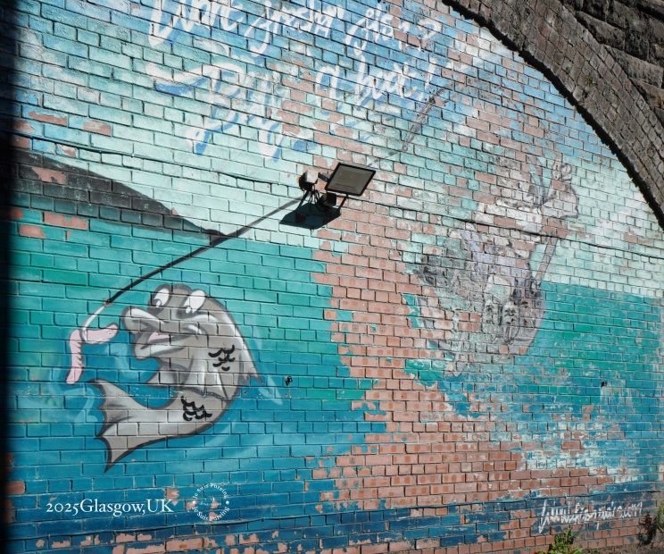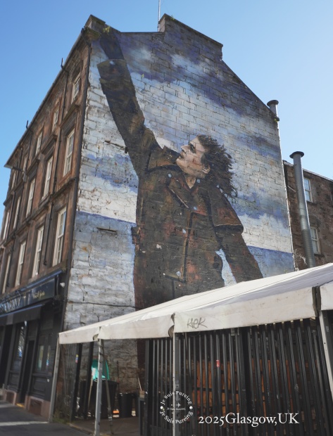 不過這幅壁畫和我之前在網路查到的圖案不大一樣,似乎有重新換了壁畫內容,所以我也不很確定是否是之前同一作者以及繪製年份,所以打上?號。這個作品位置在克萊德河(River Clyde)岸邊,這條河流是是蘇格蘭最重要的河流之一,是蘇格蘭第三長的河流,也長期扮演著格拉斯哥發展與工業歷史中的關鍵角色。