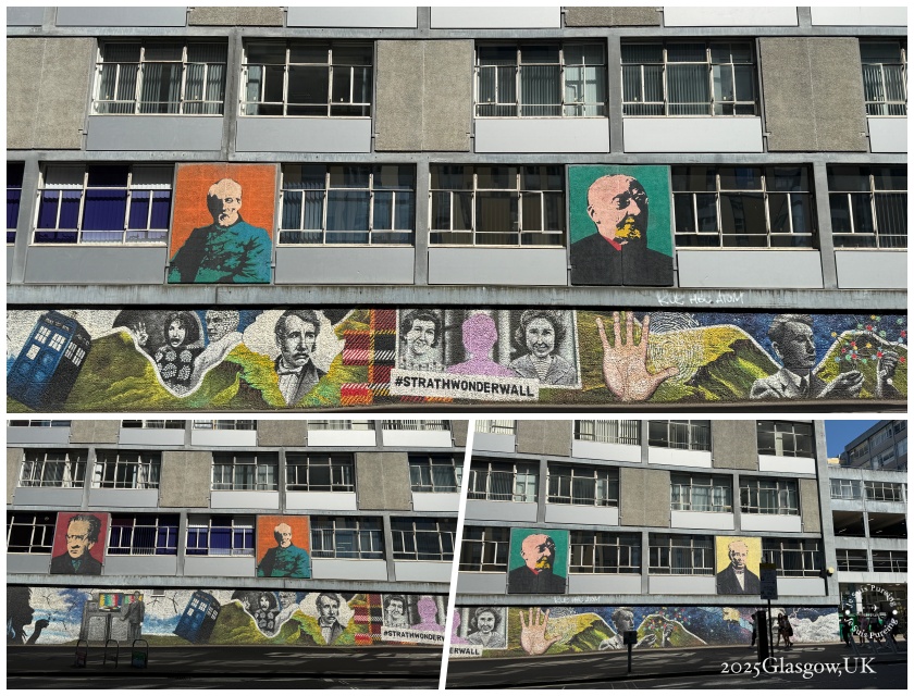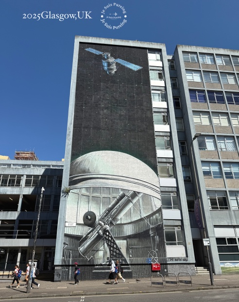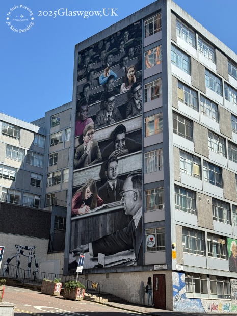 這個大學建築藝術壁畫離 Smug 著名的作品 《Saint Enoch》(聖伊諾克)不遠,很容易看到這棟七層建築大樓和外面的大型壁畫作品。