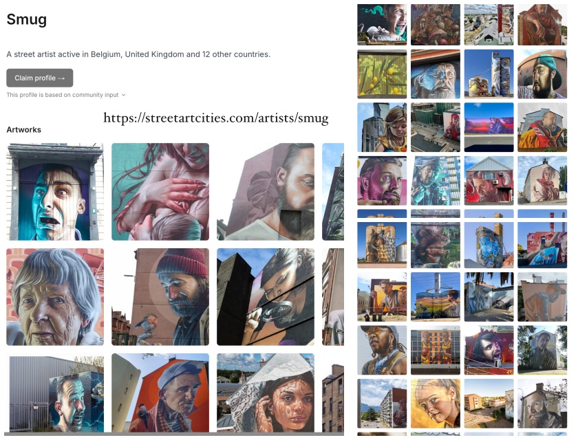 關於 Smug 這位街頭藝術家的作品,可以在 https://streetartcities.com/artists/smug 網站上看到他的作品集,大約有七八十個以上,主要地點在澳洲以及蘇格蘭,有興趣的可以進去這個網站看看。