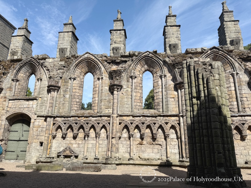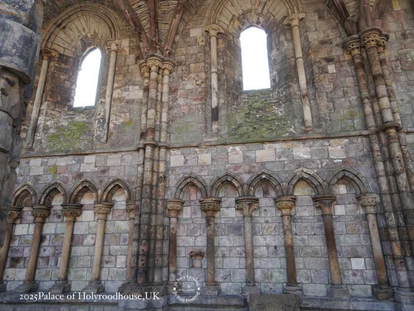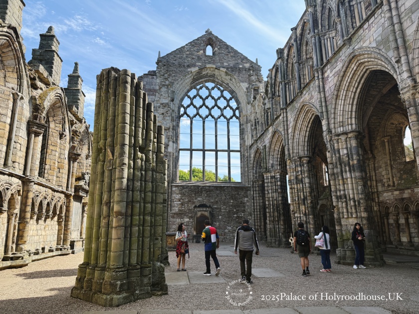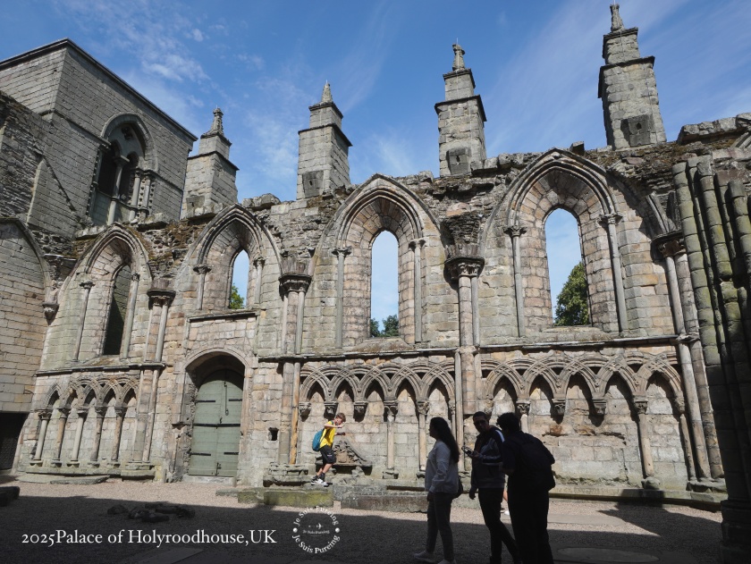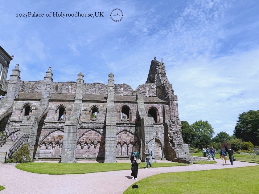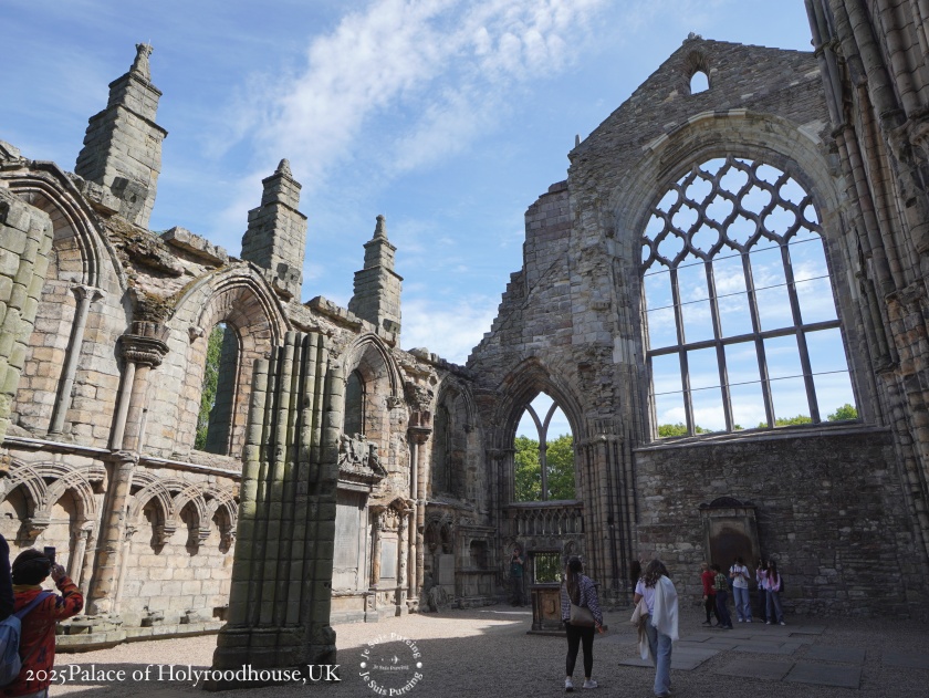 只是這趟旅程參觀的城堡實在太多,有些記憶只能靠照片一點一點喚回。偏偏荷里路德宮內部不能拍照,說實話,王室寢室或各個展覽廳的細節,如今已經有些模糊。反倒是宮殿旁那座荒廢的修道院,成了我最深刻的印象。