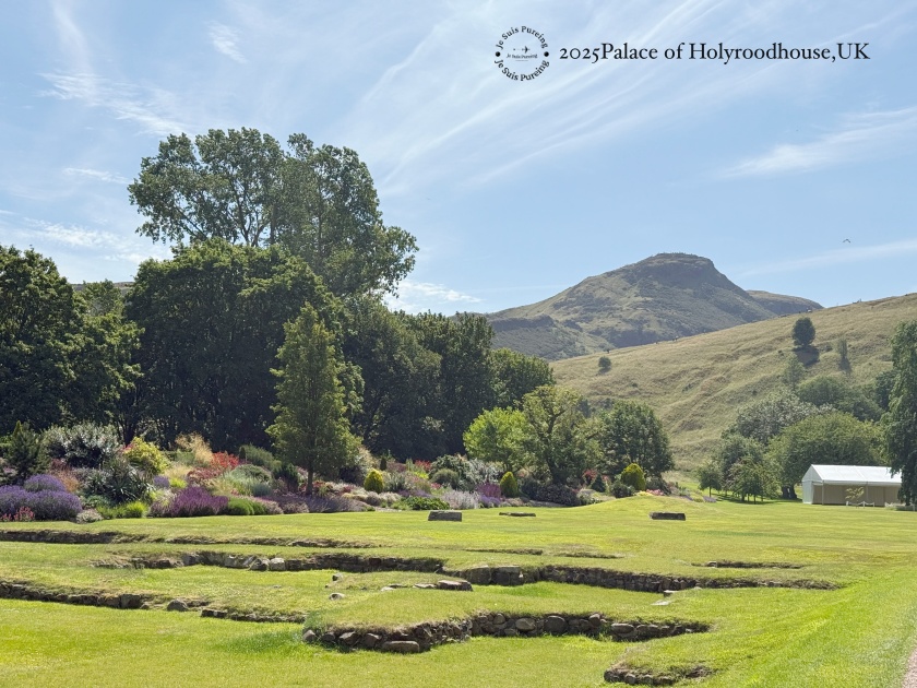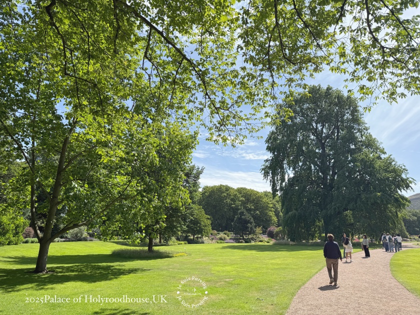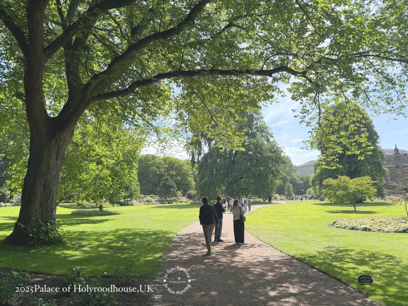 荷里路德宮花園占地約 4 公頃,背靠亞瑟王座,並與荷里路德公園相連,是一座結合王權、宗教與自然地貌的皇家花園。花園位於宮殿建築後方,環繞修道院遺跡與王室居所,草地、花壇與古老石牆隨季節變化,背景則是索爾茲伯里峭壁,讓這座王室花園同時擁有城市與自然交會的開闊尺度。相較於宮殿室內的莊嚴,花園更顯寧靜從容,適合放慢腳步感受時間流逝。