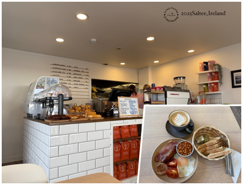 這天的早午餐,是一份再典型不過的愛爾蘭傳統早餐。盤子裡有香腸、培根、煎蛋、番茄、蘑菇,還有一小份焗豆,旁邊配著厚切吐司與一杯熱咖啡。看似份量十足,味道卻意外地單純,不靠複雜調味,只是把食材本身好好煎熟、上桌。坐在 Kilmore Quay 小鎮的咖啡店裡,這份早餐吃得很滿足也很剛好,為接下來要上島、要走路健行、還要吹海風的一天,先把肚子填飽為上。