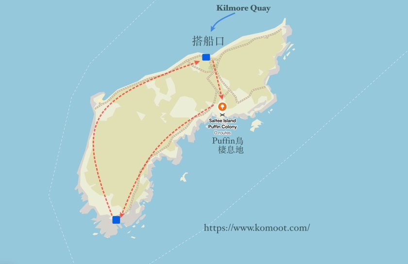 主要交通路線:Wexford(或 Dublin 出發往 Wexford)- Kilmore Quay – Saltee Islands