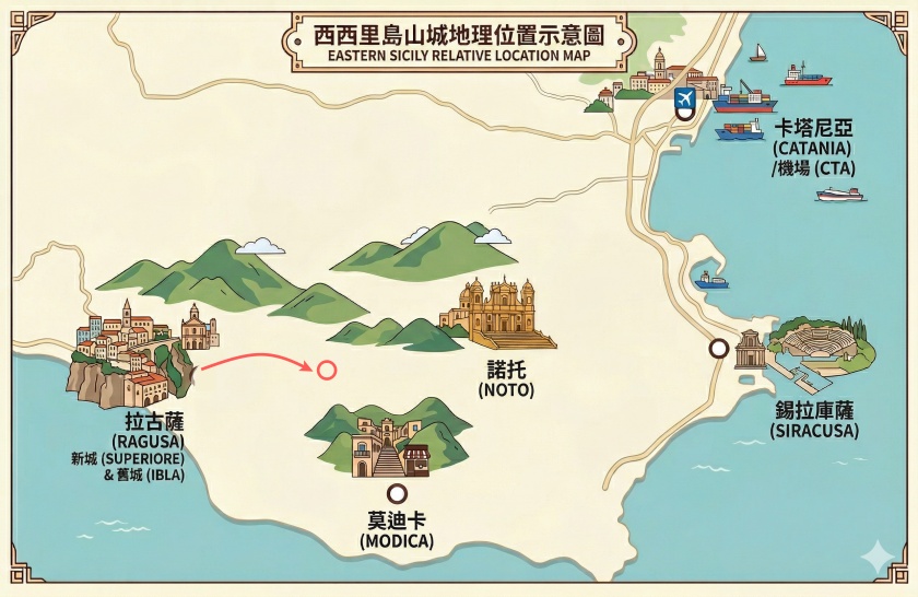 | 區域節點 | Piazza Armerina、Caltanissetta、Gela、Ragusa、Modica、Comiso | 區域中心/中繼轉運點 | 多數跨區移動會在這一層轉車 |