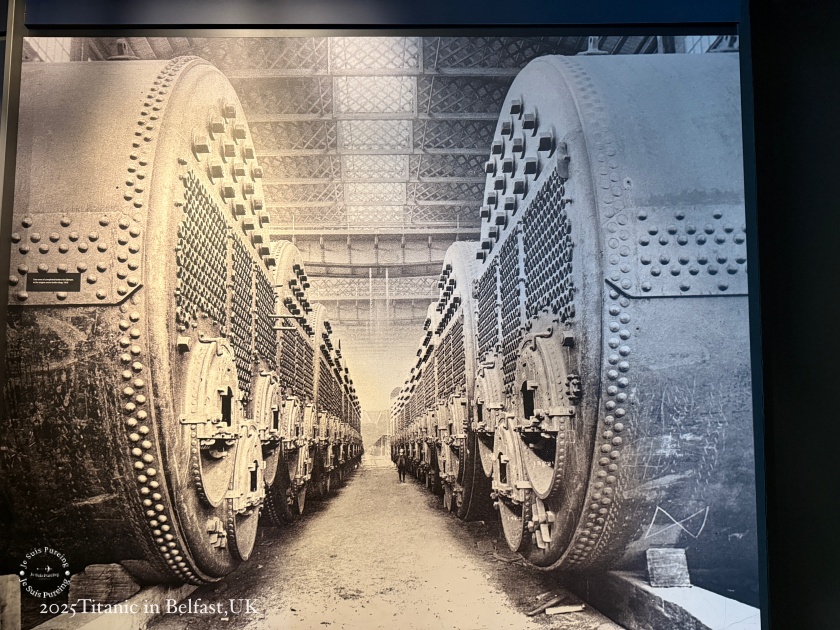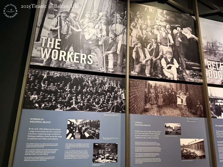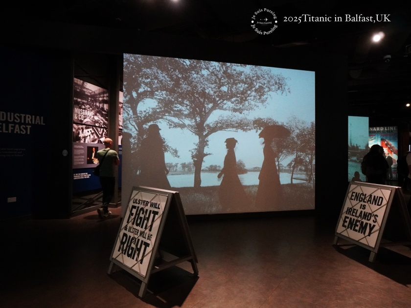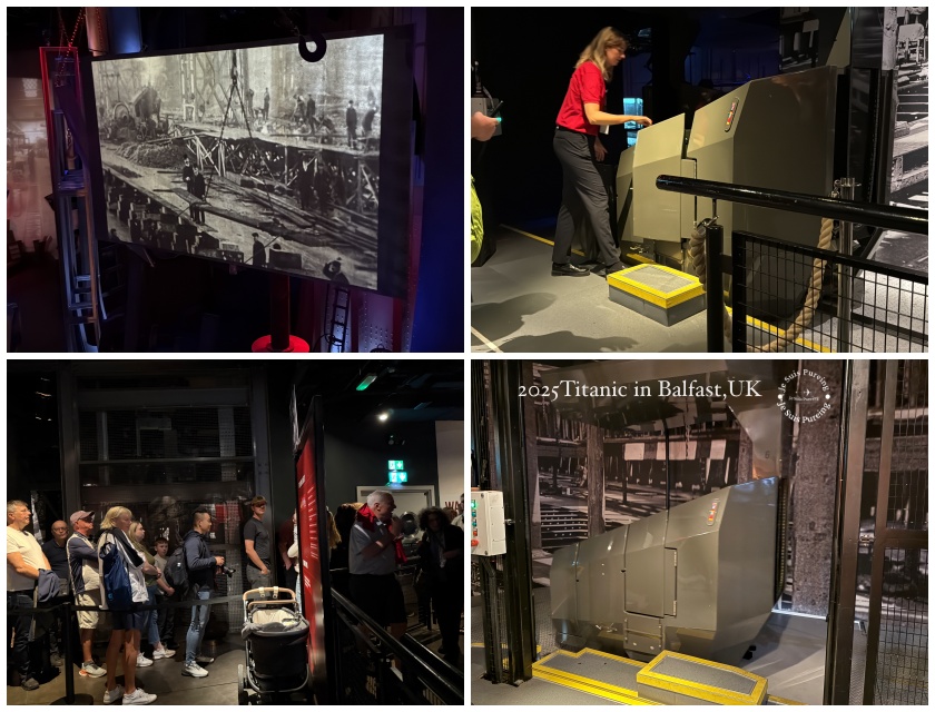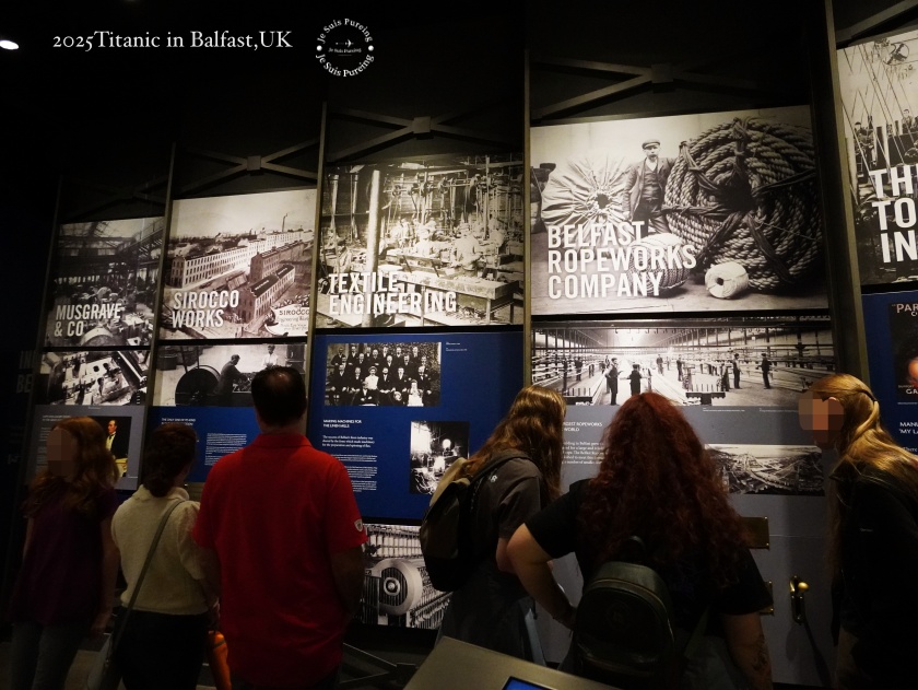 這一區是我個人最喜歡的展覽內容之一,解說非常完整,除了語音導覽,還搭配大量看板文字,讓人能清楚理解鐵達尼號與貝爾法斯特之間的連結,完整交代了這座城市在當時的發展背景。展區中呈現的許多歷史照片,讓人得以直觀看見那個年代的造船現場與城市成長演進過程,使鐵達尼號不再只是單一船難歷史事件,而是城市發展脈絡中的一部分。