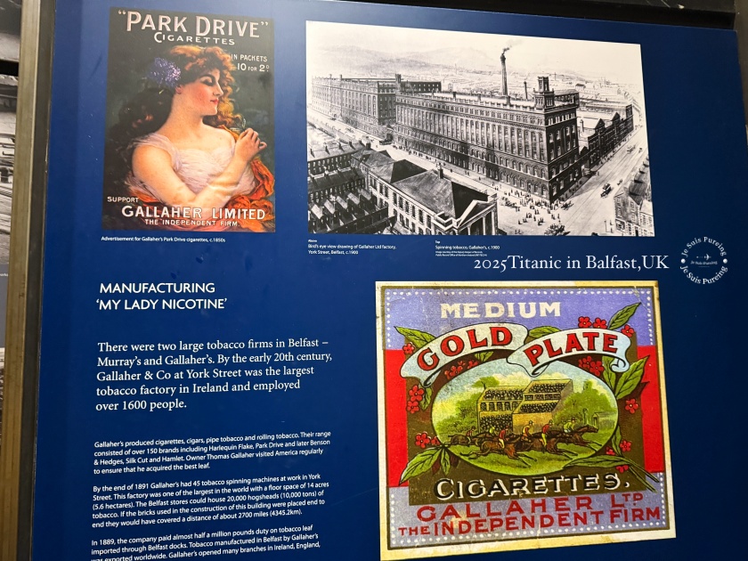 20 世紀初,菸草工業也是貝爾法斯特的重要產業之一,以 Gallaher Limited 為代表,其位於 York Street 的工廠曾是愛爾蘭規模最大的菸草工廠,僱用超過 1600 人。菸品不僅供應本地市場,也外銷海外,成為城市工業與出口體系的一環。