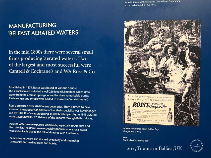 19 世紀中葉,貝爾法斯特發展出氣泡水產業,以 Cantrell & Cochrane 與 W.A. Ross & Co. 最具代表性。利用純淨水源製成的薑汁汽水不僅外銷海外,也因安全衛生而廣受鐵路、航運與飯店採用,展現城市工業與貿易的多元面貌。