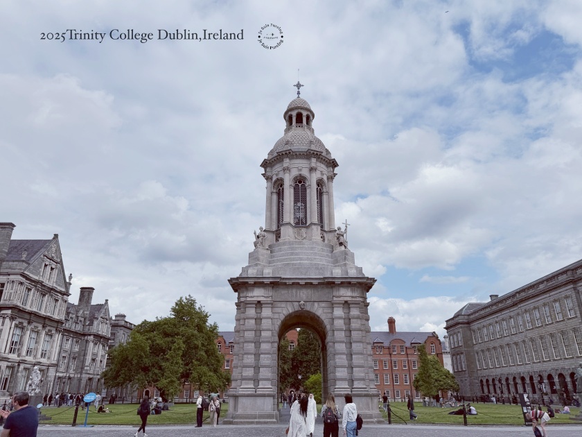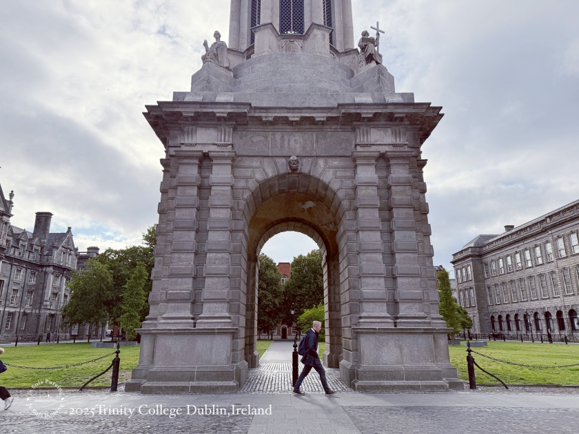 這次一共到訪都柏林聖三一學院兩次。第一天是在抵達都柏林市區後的傍晚,順道走進校園散步。盛夏時節,除了仍在校內活動的學生之外,校園裡多半是前來參觀與拍照的遊客,氣氛熱鬧而開放。
