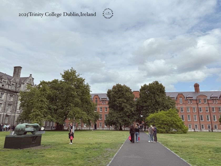 聖三一學院(Trinity College Dublin)有超過四百年的歷史,長時間以來一直是愛爾蘭學術世界的重要一角。校內圖書館收藏了不少珍貴文獻,其中最常被提起的,便是中世紀的手抄福音書《凱爾經》(Book of Kells)。但在這些歷史名詞之外,這裡依然是一所正在運作的校園——學生在庭院間來回穿梭,草地上有人坐著閱讀或交談,過去並沒有被封存,而是靜靜地融入每天的校園日常。