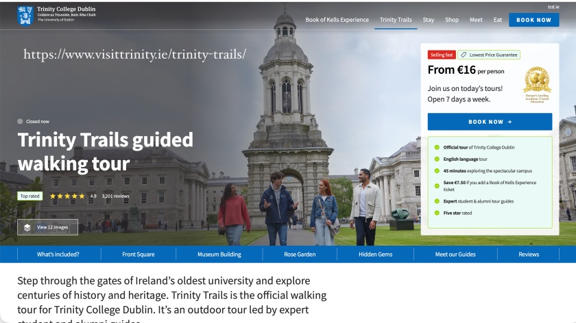 官網訂票:https://www.visittrinity.ie/trinity-trails/