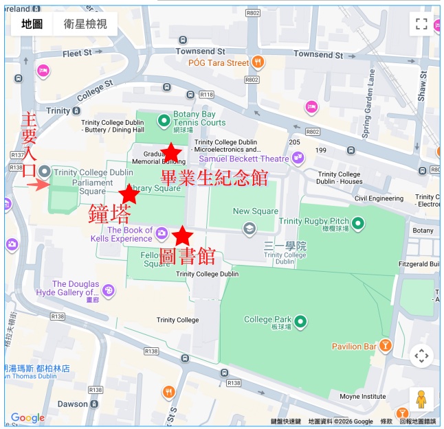 校園地圖:https://www.tcd.ie/Maps/map.php