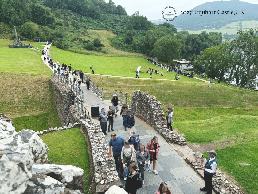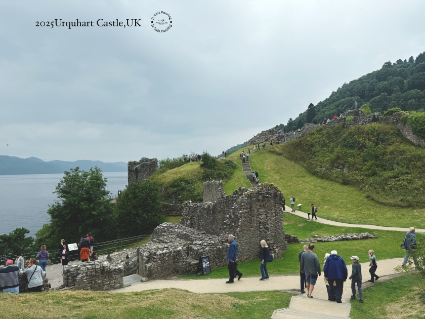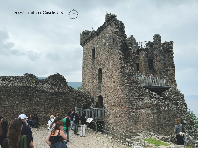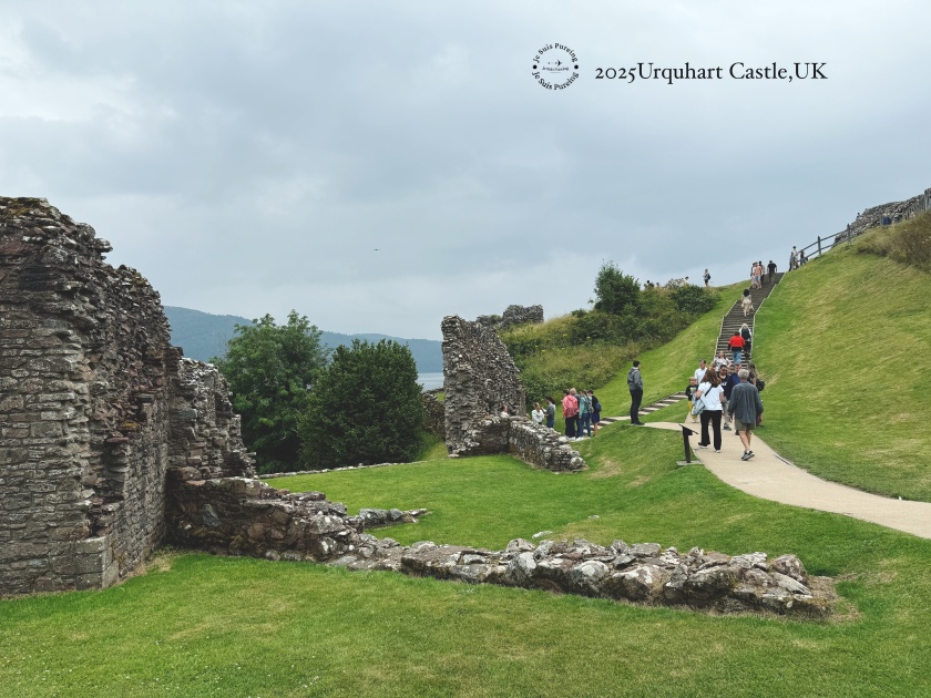 唯一的小小不完美是自己低估了尼斯湖畔的天氣,出門時穿得不夠暖,站在城堡高處,湖面吹來的冷風一陣一陣,偶爾還飄著細雨,儘管是夏日還是有點冷。不過這樣的天氣,再配上城堡曾經歷過的戰爭與毀滅故事,反而顯得格外淒冷,郤很配合城堡的歷史感。雖然城堡早已在爆破中失去原本的樣貌,留下的建築不算完整,但當你真正了解它在蘇格蘭歷史中的角色,再回頭望向尼斯湖畔的這座廢墟,會更有感受。這也正是我會真心推薦厄克特城堡的原因——它不是壯麗取勝,而是讓人慢慢走進蘇格蘭高地歷史,了解城堡廢墟由來典故。