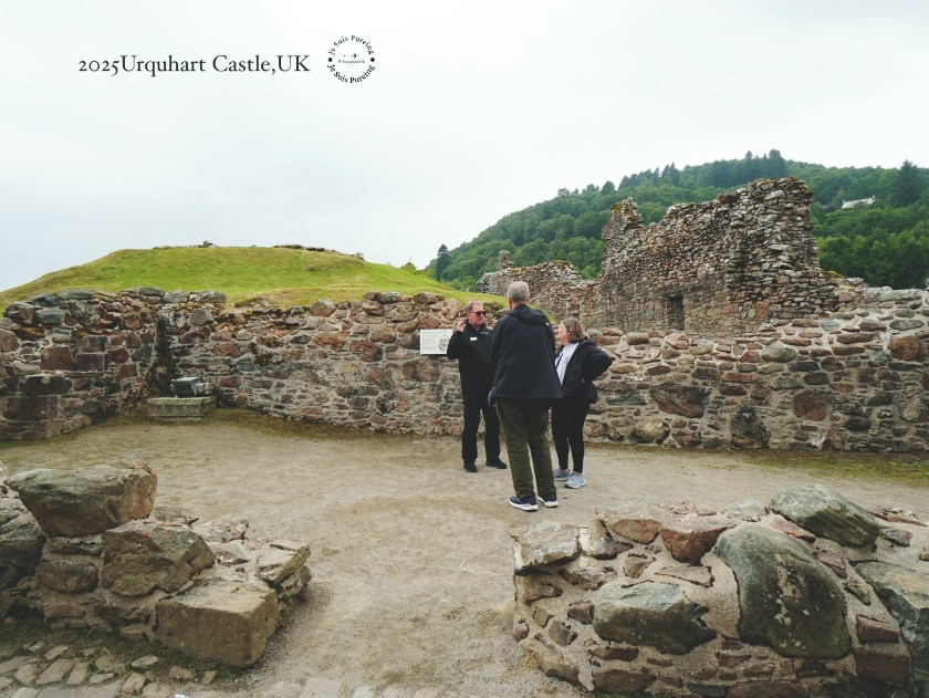 從停車場走向城堡入口的高地邊緣,在真正的中世紀城堡出現之前,這裡早已是一處防禦據點。考古學家發現的「玻璃化石塊(vitrified stone)」顯示,早期工事曾遭高溫焚燒——這正是 皮克特人(Picts) 要塞的典型特徵。當你站在這裡,可以想像在在石牆、塔樓與尼斯湖傳說之前,這片高地已是 Great Glen 戰略線上的第一道防線。