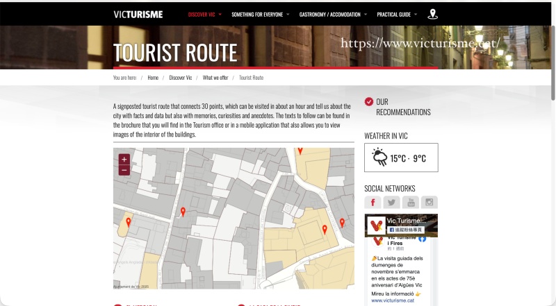此外,Vic 城鎮本身的官網旅遊資訊十分充足,提供了不少相關訊息,無論食宿交通,甚至當地導覽,應有䀆有,而我剛好找到一個介紹 Vic 旅遊步行路線地圖。